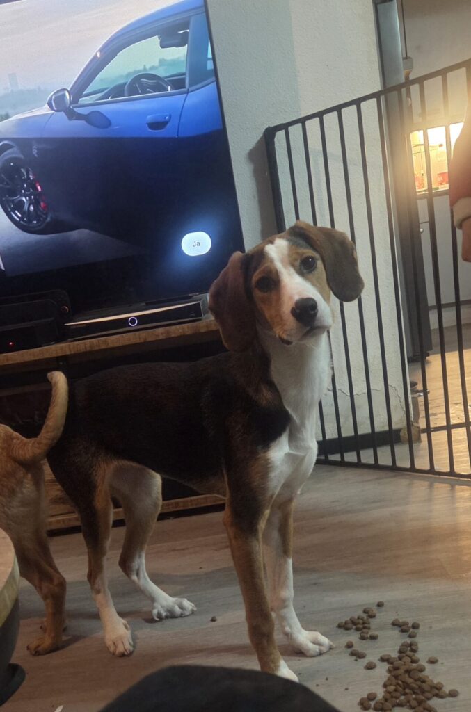 Abigail was ontroostbaar. Hierdoor kan ze wat moeilijk alleen zijn, met een andere hond kan ze dit wel goed.
