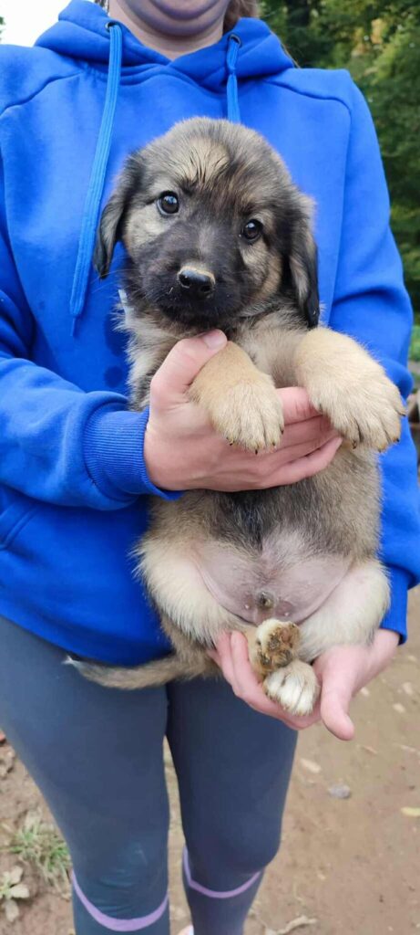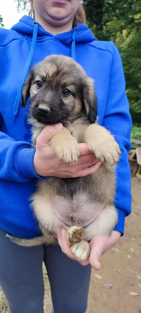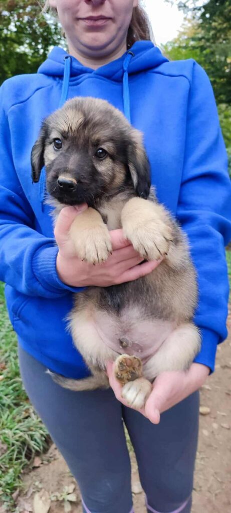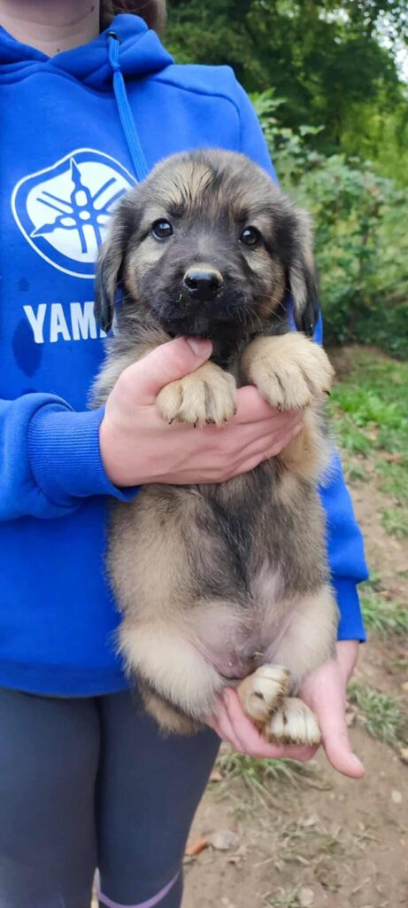 Akaro is een lieve jongen uit het nest van 8 pups, geboren in juli 2025. Hij weegt ongeveer 4–5 kilo en is rond 30 cm hoog.
