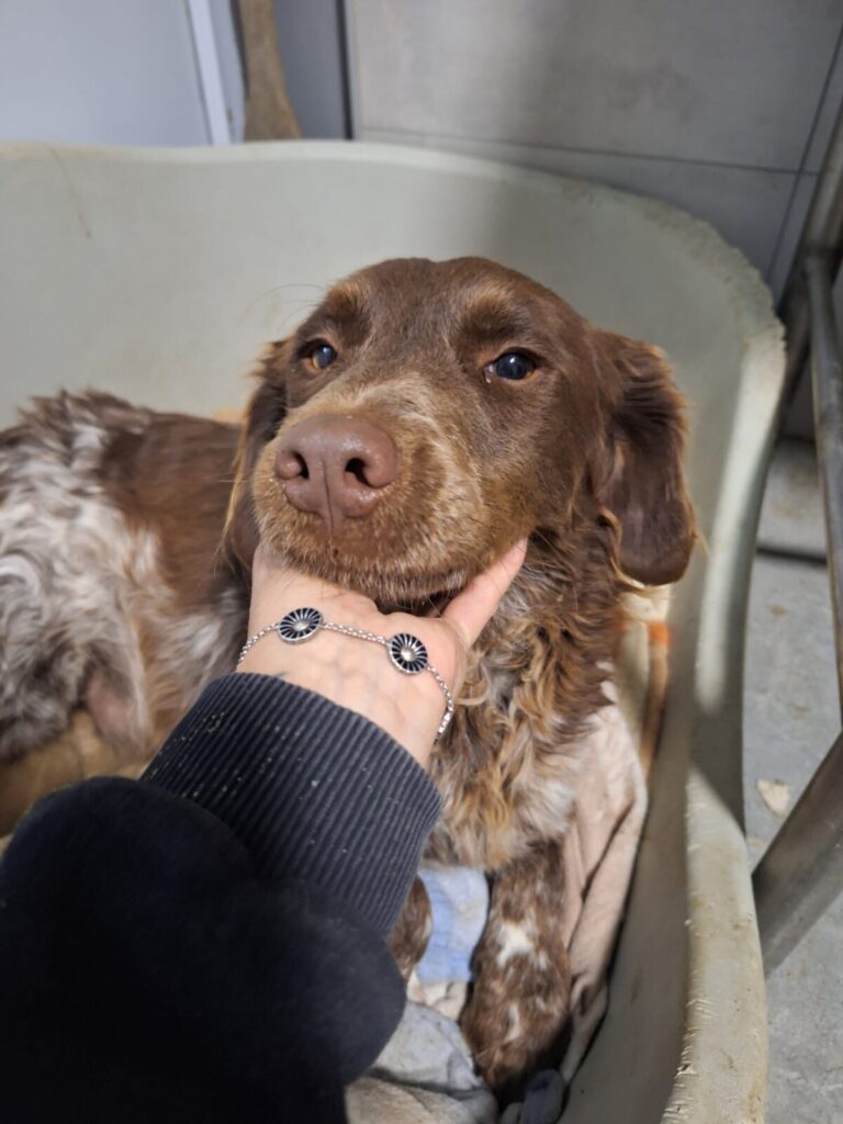 Hij is ongeveer 43 cm hoog en weegt rond de 14 kilo – een ideaal middelmaatje. Albert is volledig gevaccineerd en gecastreerd en staat klaar om te reizen en te beginnen aan zijn nieuwe leven. Het enige dat nog moet gebeuren, is het 4D-testje voor vertrek.