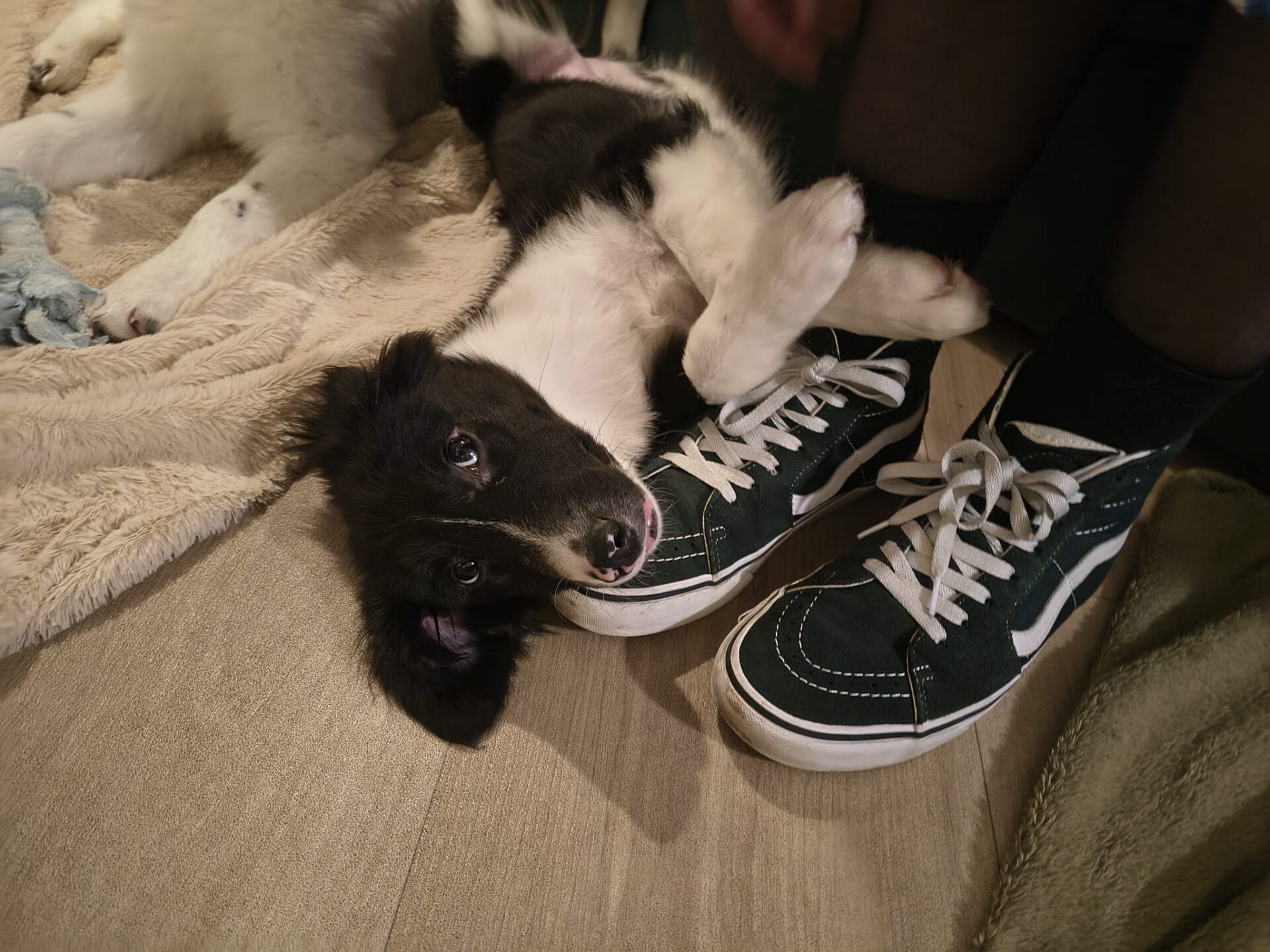 Als echte pup slaap ik nog veel, maar zodra ik wakker ben, heb ik ook lekker veel energie. Ik vind het geweldig om achter speeltjes aan te rennen en ze weer terug te brengen. Vooral een bal maakt me dolblij. Ik denk dat ik later, als ik groter ben, echt ga genieten van samen bewegen en spelen. Maar knuffelen is minstens zo belangrijk voor mij. Ik ben dol op aandacht en kom graag dicht tegen je aan liggen, soms zelfs (half) op schoot.