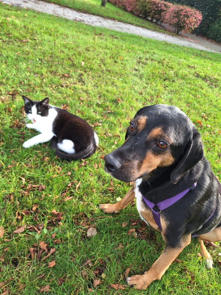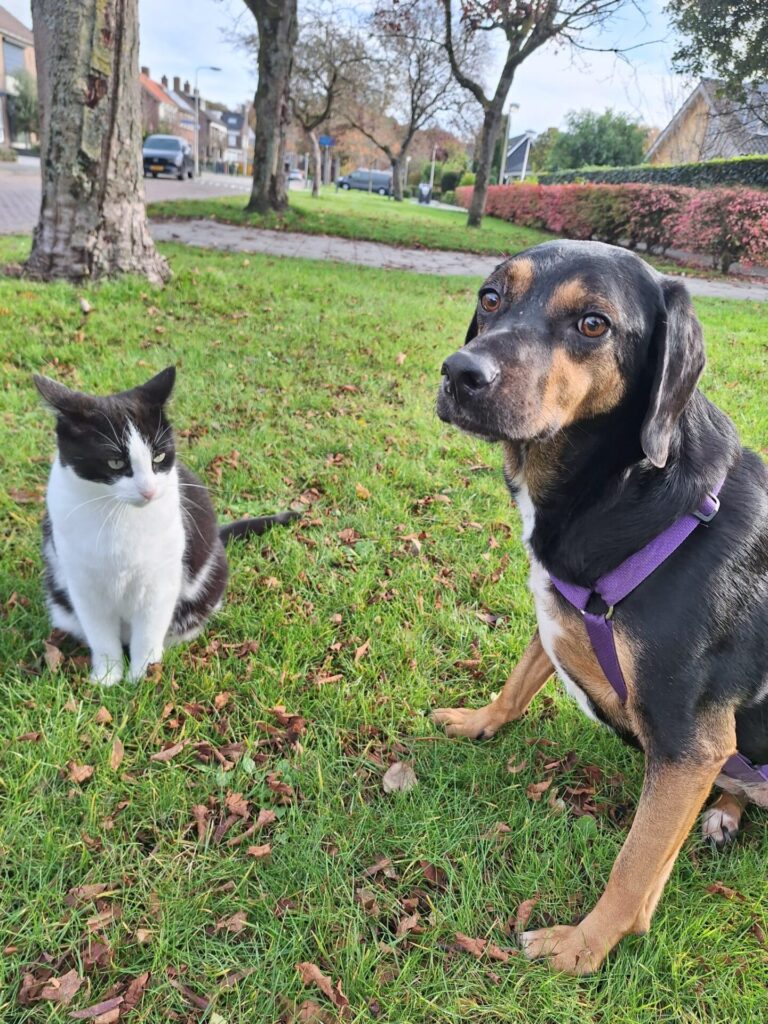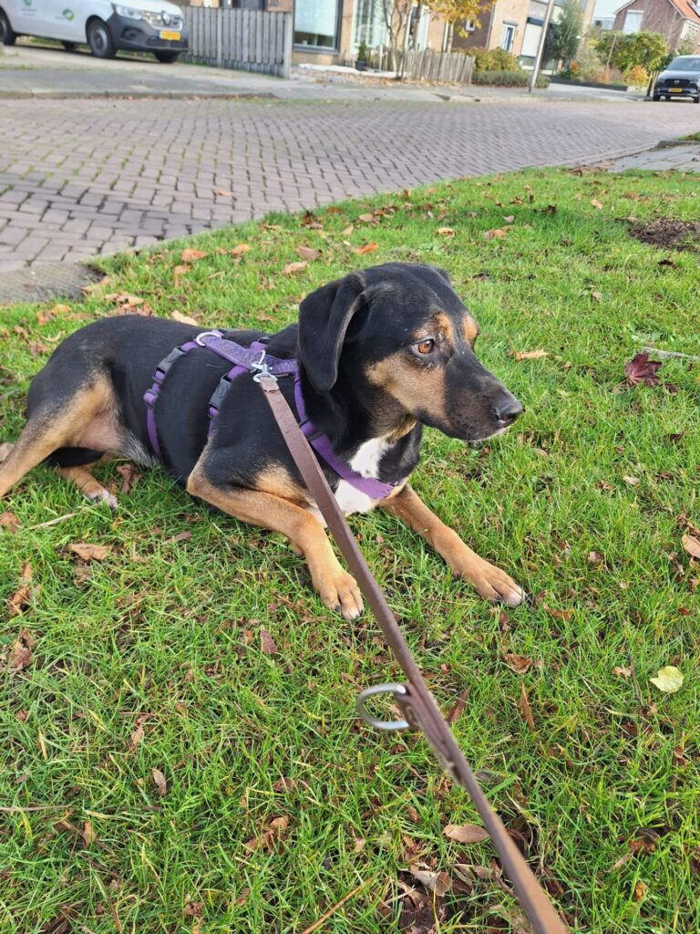 Met andere honden, katten en kinderen gaat ze uitstekend om. Ze is sociaal, vriendelijk en nooit opdringerig. Aan de riem lopen gaat inmiddels heel goed, iets waar ze zichtbaar van geniet.