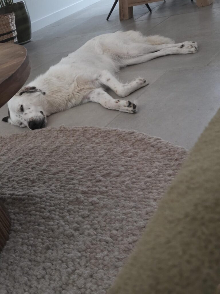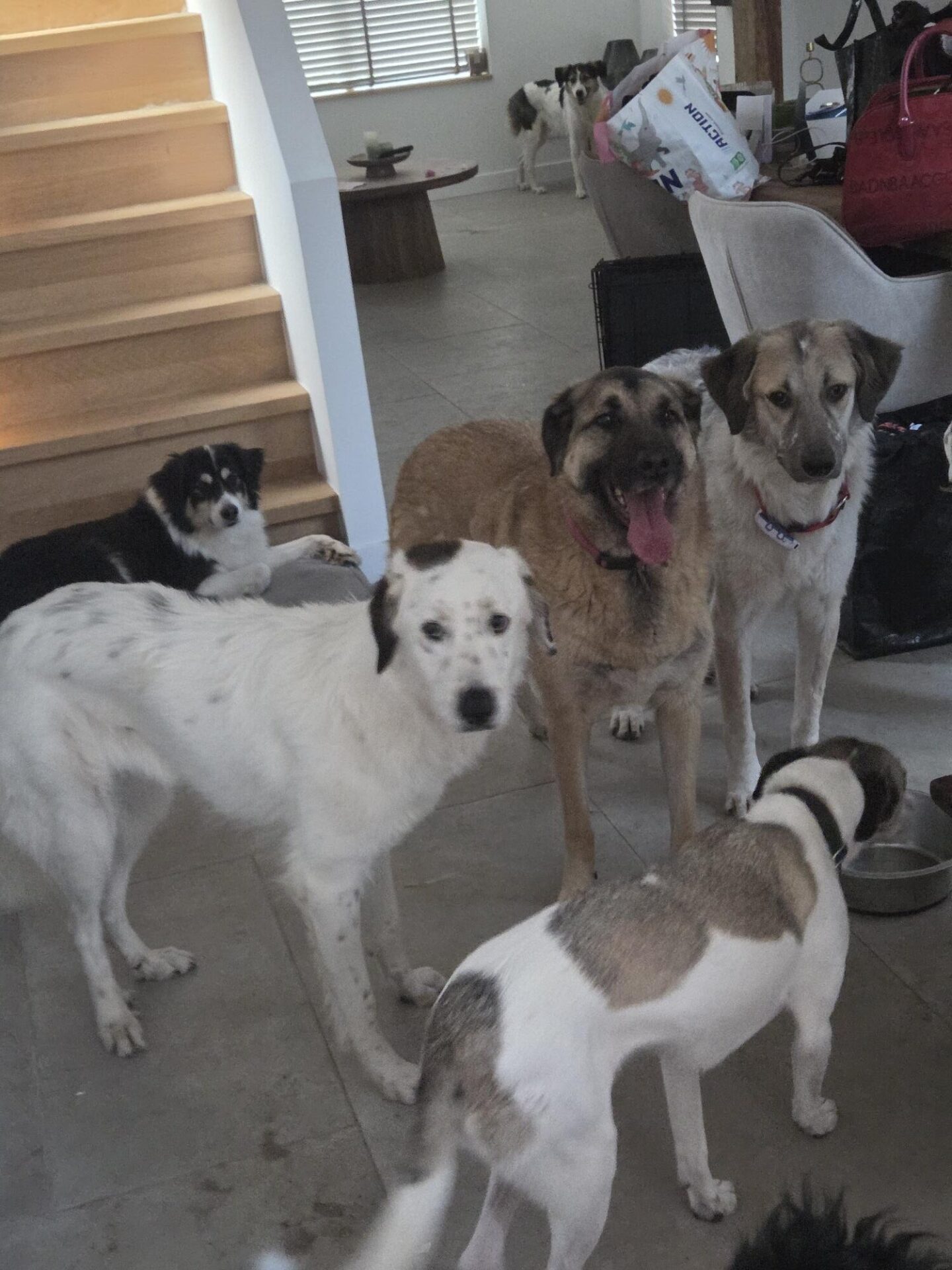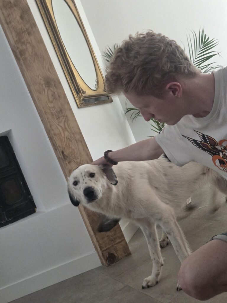 De boze buitenwereld blijft spannend, ze loopt wel mee aan de riem, maar niet relaxed. Dit mag dus verder uitgebreid na een rustige wenperiode.