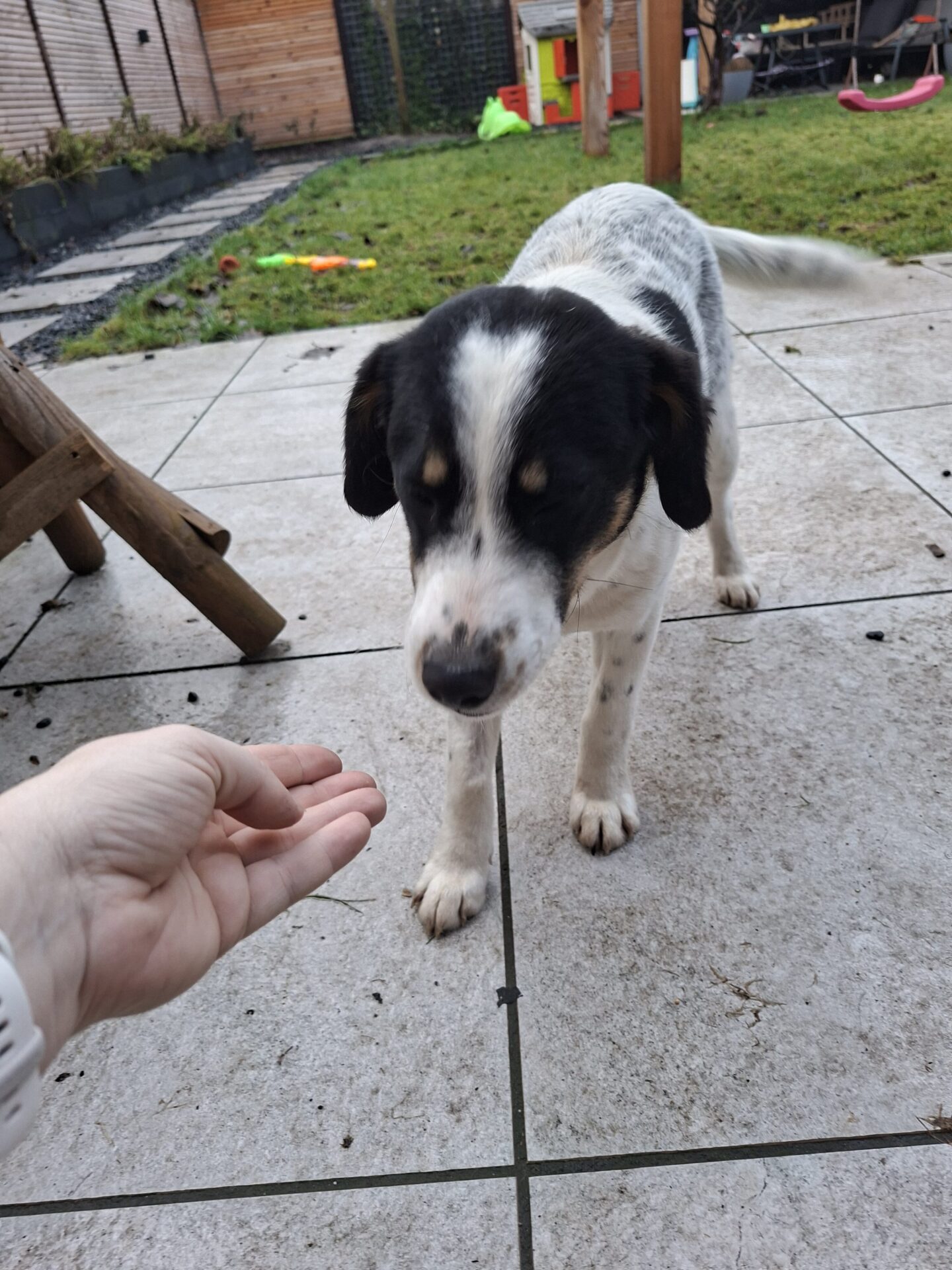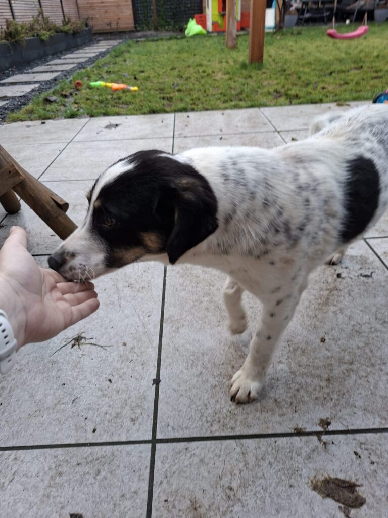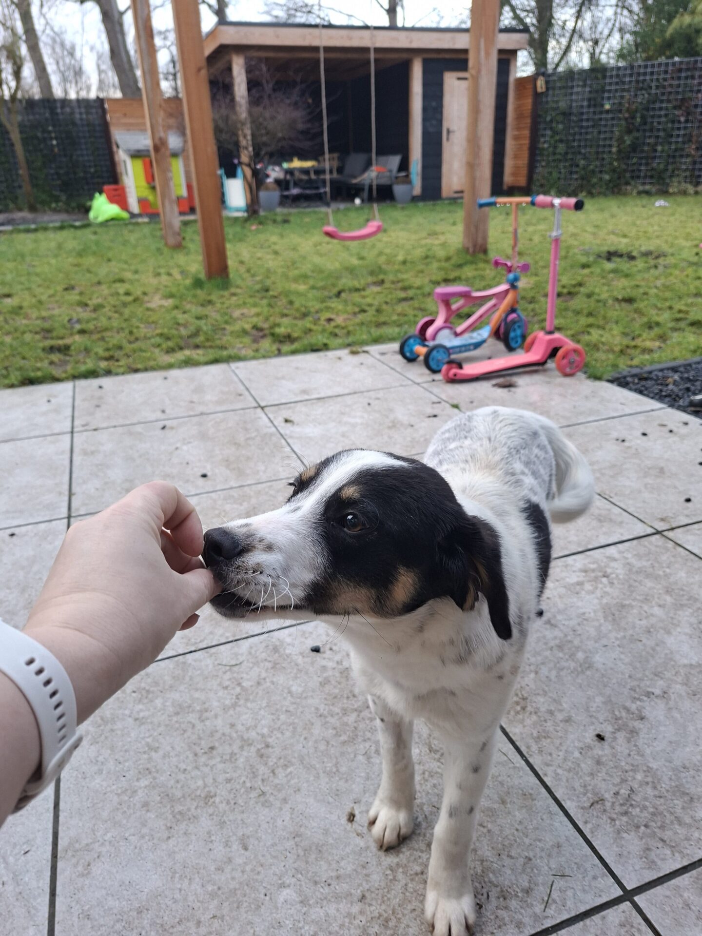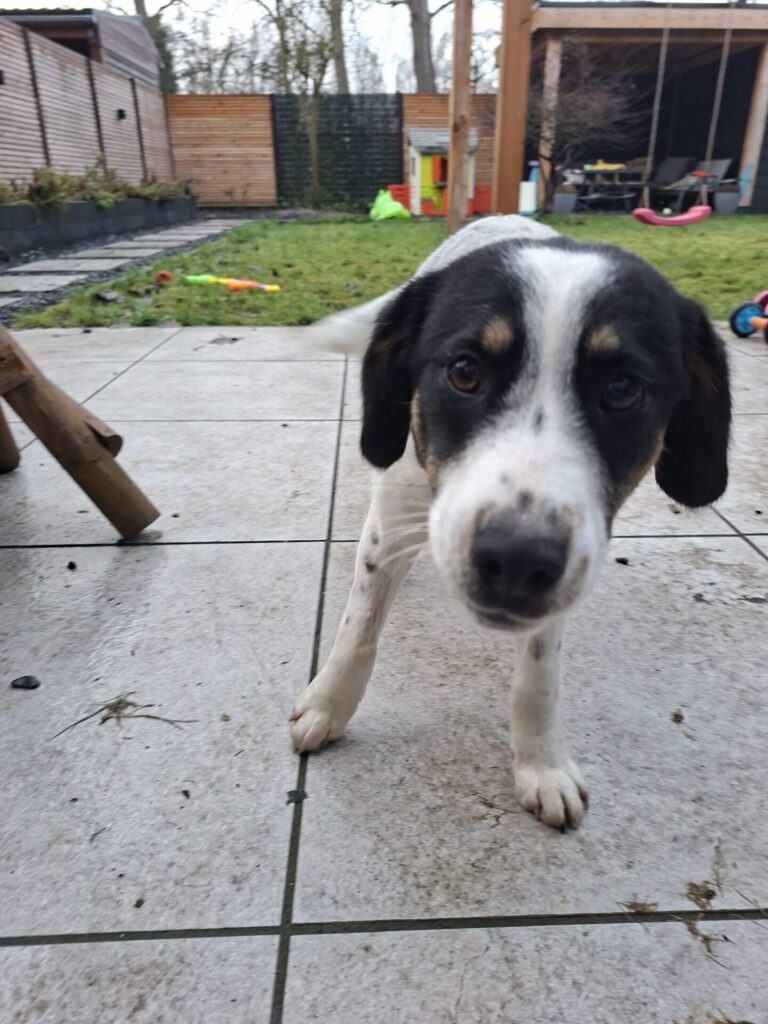 Blex is een reu, geboren eind mei / begin juni 2025, en één van de pups van mama Basna. Hij is ongeveer 10 kilo en rond de 40 cm hoog. Een prachtig, compact hondje met een open, vriendelijke uitstraling.