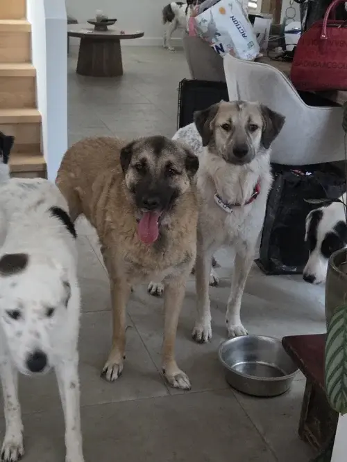 In haar fostergezin leeft ze harmonieus samen met meerdere honden – jong en oud, reutjes en teefjes – en dat maakt haar gelukkig.
