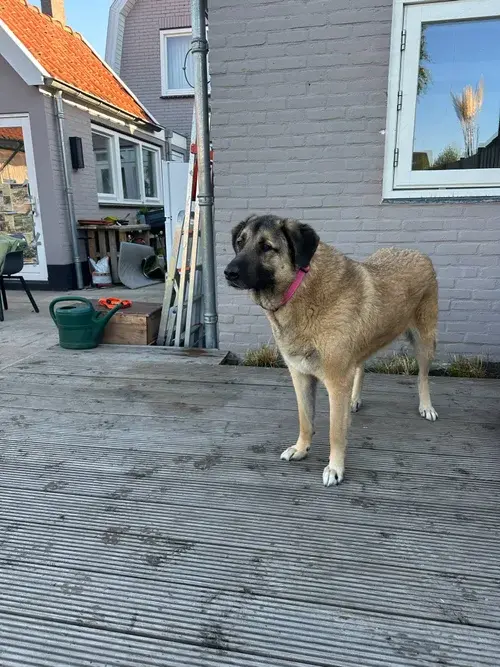Dankzij een liefdevolle foster mama mocht Brenda eindelijk naar Nederland komen. Voor het eerst voelde ze gras onder haar poten, de zon op haar rug, en een zachte hand op haar vacht. De eerste dagen waren zwaar – ze bevroor van angst en verschool zich in de douche. Maar met eindeloos geduld en liefde bloeide ze langzaam open.