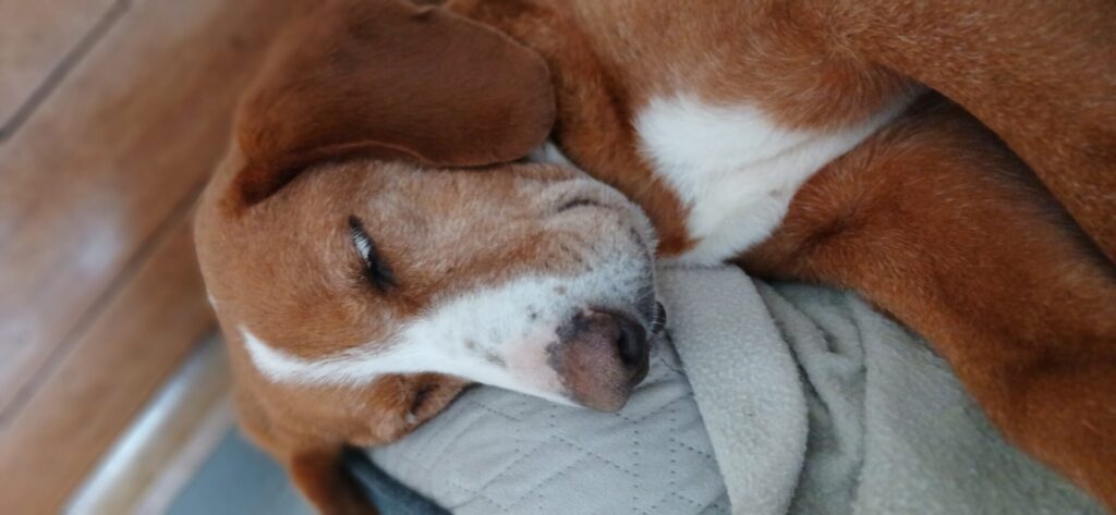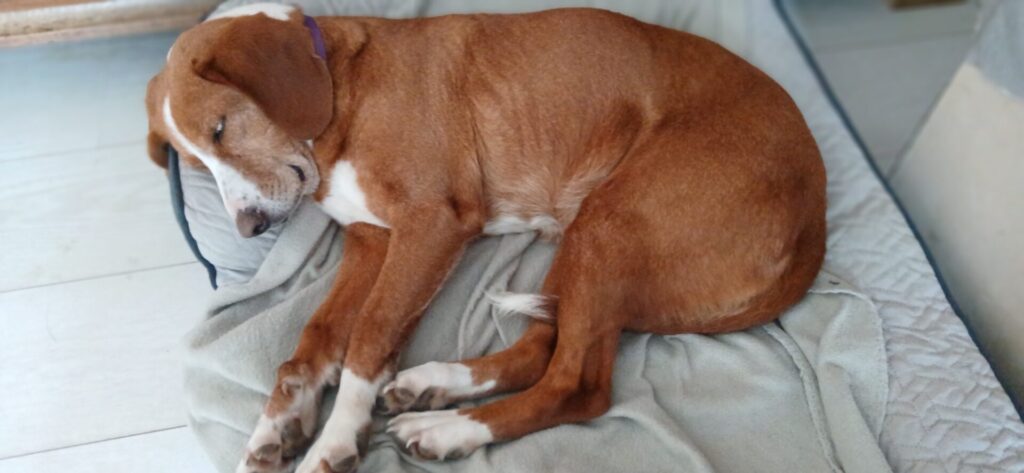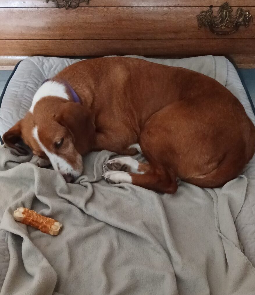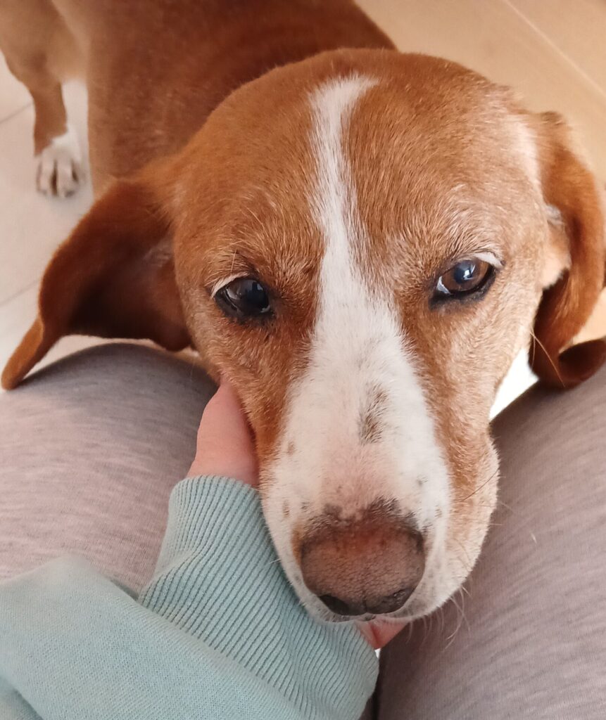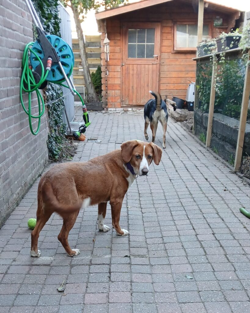 Celia (±2016) bracht haar hele leven vastgeketend door als jachthond. Toen ze niet meer zo hard kon rennen, werd ze afgedankt. Gelukkig mocht ze naar Nederland komen en verblijft ze nu veilig in een opvanggezin.
