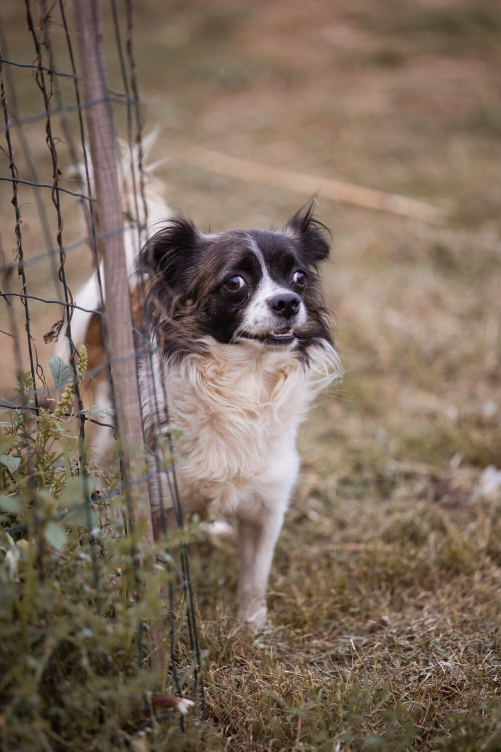 Met zijn vrolijke snoetje en charmante blik steelt hij al snel je hart – vermoedelijk is hij een Pekingees-mix.