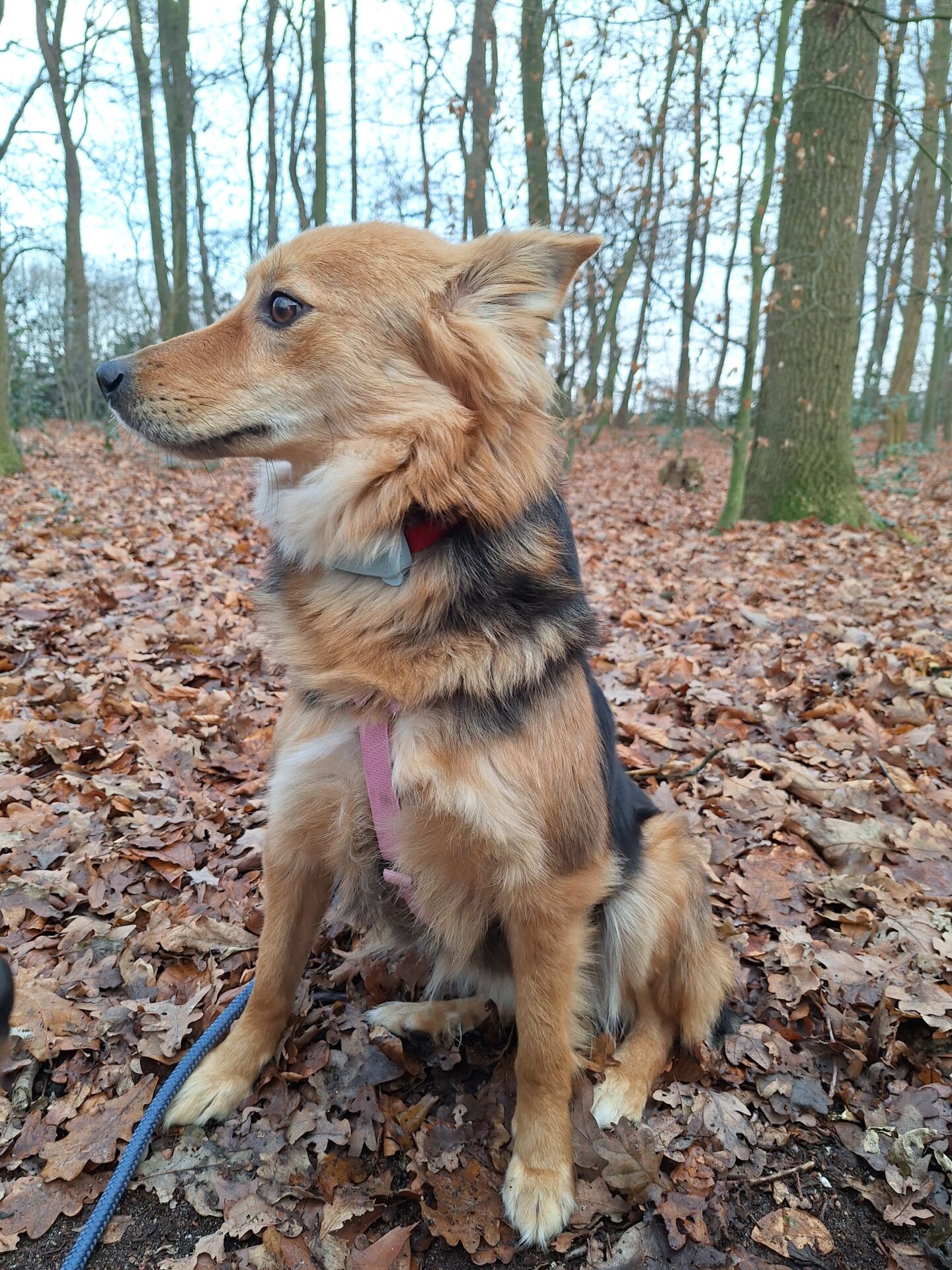 Wandelen vindt Chiara spannend wanneer er veel prikkels zijn, maar in een rustige omgeving – zoals het bos – zie je haar ontspannen en genieten. Ze gebruikt graag haar neus en verkent de omgeving liever rustig dan druk spelend. De verwachting is dat ze, met vertrouwen en tijd, zal uitgroeien tot een heerlijke wandelmaat.