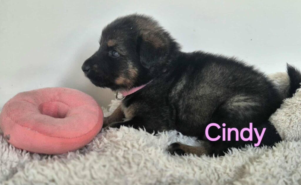 Cindy was de eerste pup uit het nest en heeft sindsdien al laten zien dat ze haar eigen weg weet te vinden. Dit lieve meisje is erg op mensen gericht: ze zoekt actief contact, laat zich graag tillen en geniet van aandacht en knuffels.