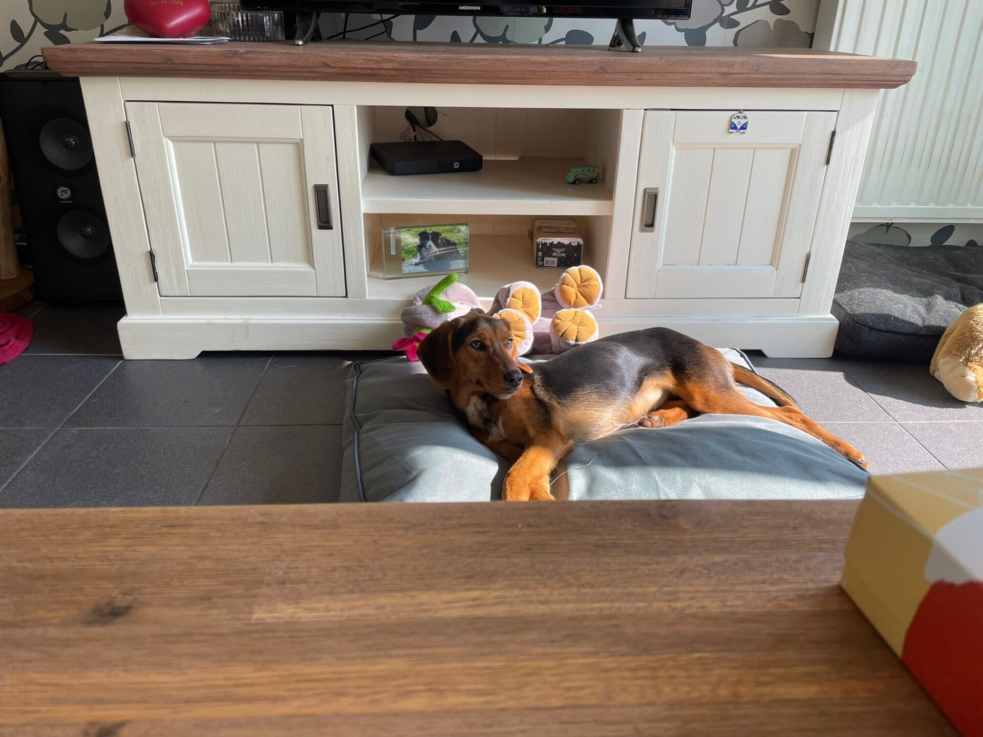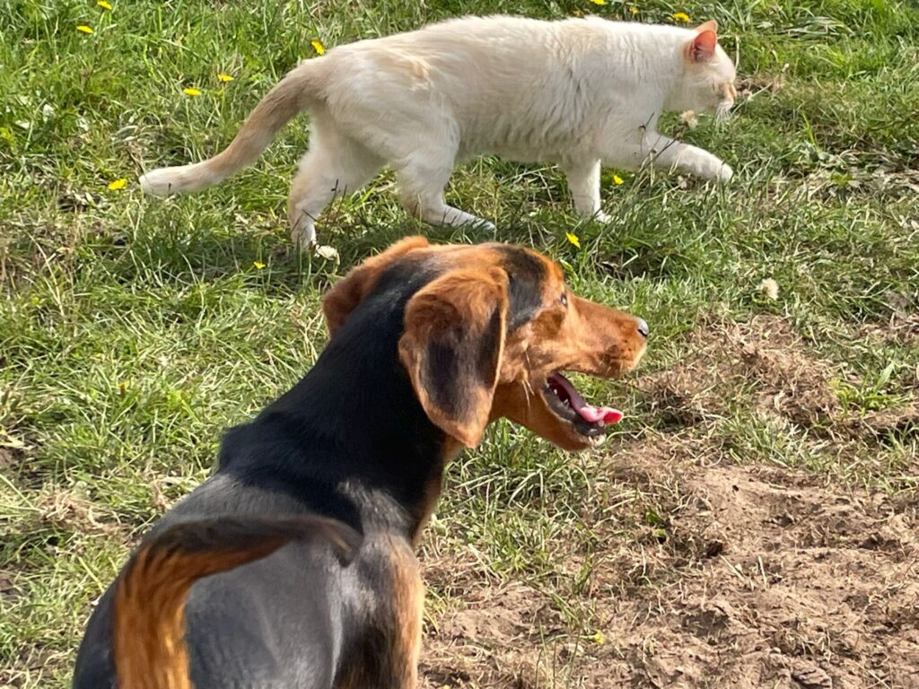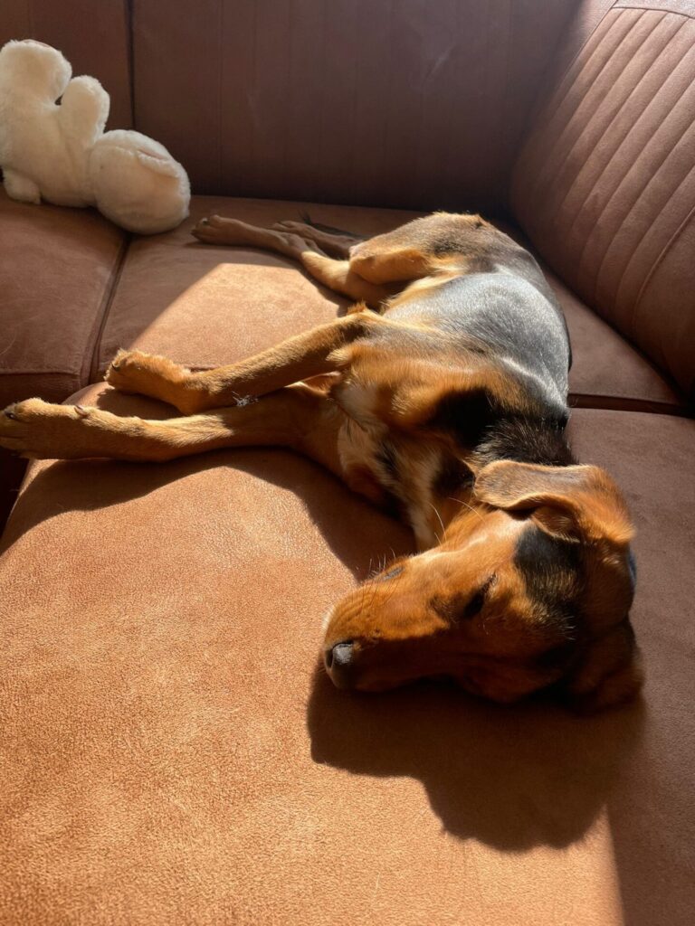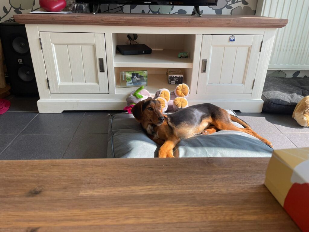 Corsa is een sociaal, vriendelijk en knuffelig hondje dat goed kan overweg met mensen, kinderen, andere honden en zelfs katten – ze noemt poezen haar grote vrienden! Ze speelt graag in de tuin, reageert op haar naam en het commando “nee”, eet en drinkt goed en slaapt braaf aan het voeteneind van haar opvangmama. Ze is redelijk zindelijk en een echte deugniet met een vrolijke, ondeugende kant.