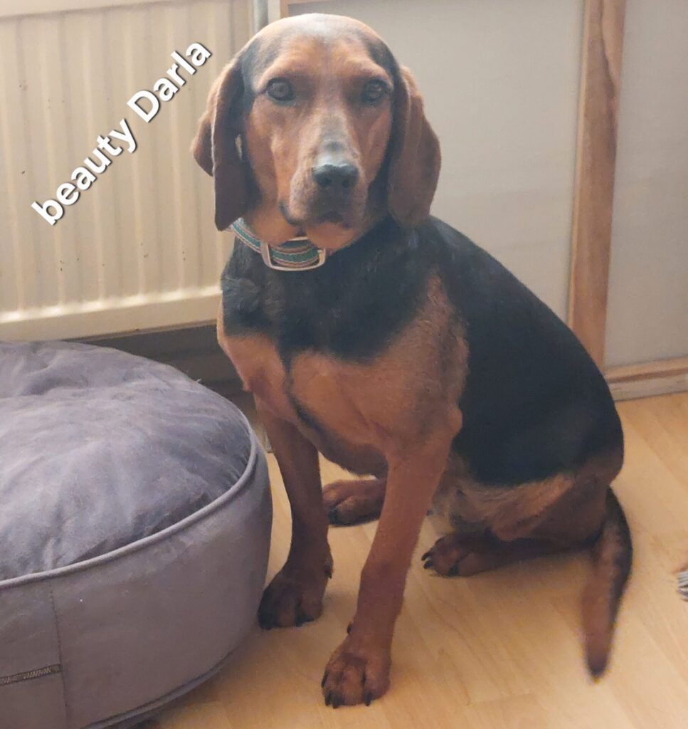 Darla is geboren in mei 2023 en is een middelgrote dame van ongeveer 43–44 cm en 16 kilo. Ze is gesteriliseerd, gevaccineerd en helemaal klaar om haar koffertje te pakken richting haar eigen gouden mandje.