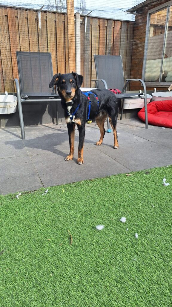 Onbekende honden vindt hij momenteel nog wat spannend, maar met begeleiding en positieve ervaringen kan hij hierin zeker groeien.