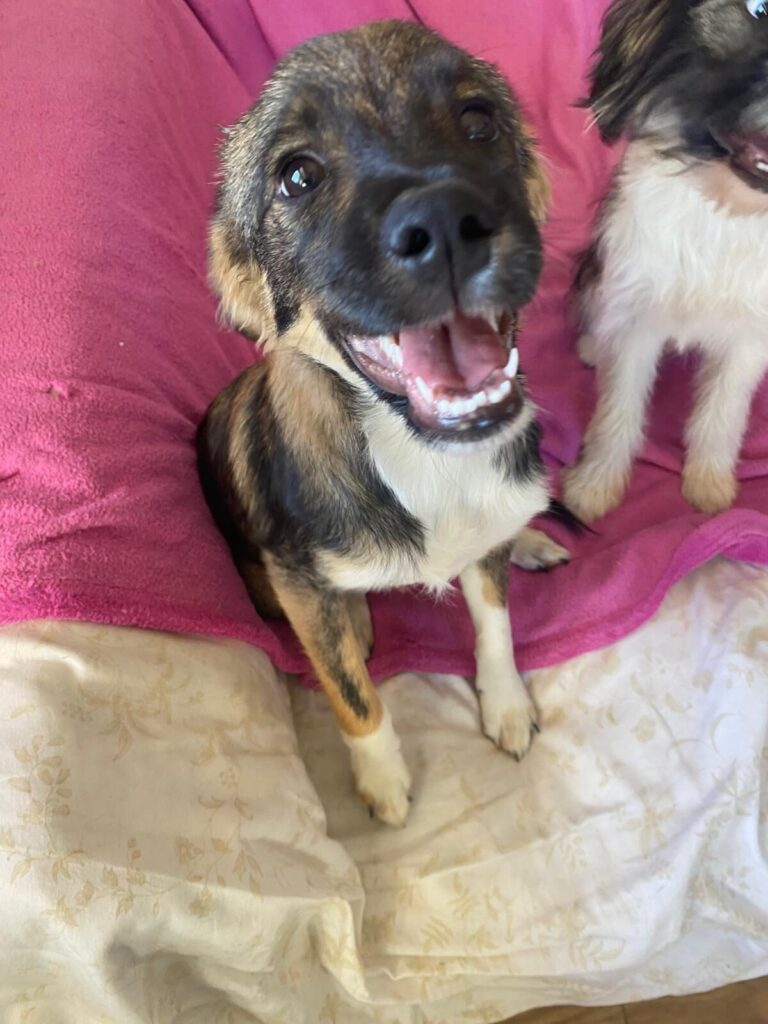Dit lieve mannetje is Dinky, het broertje van Demi. Hij is nu 4 maandjes oud, weegt 5,5 kilo en zal volgens rescuer Flora waarschijnlijk onder de 10 kilo blijven.
