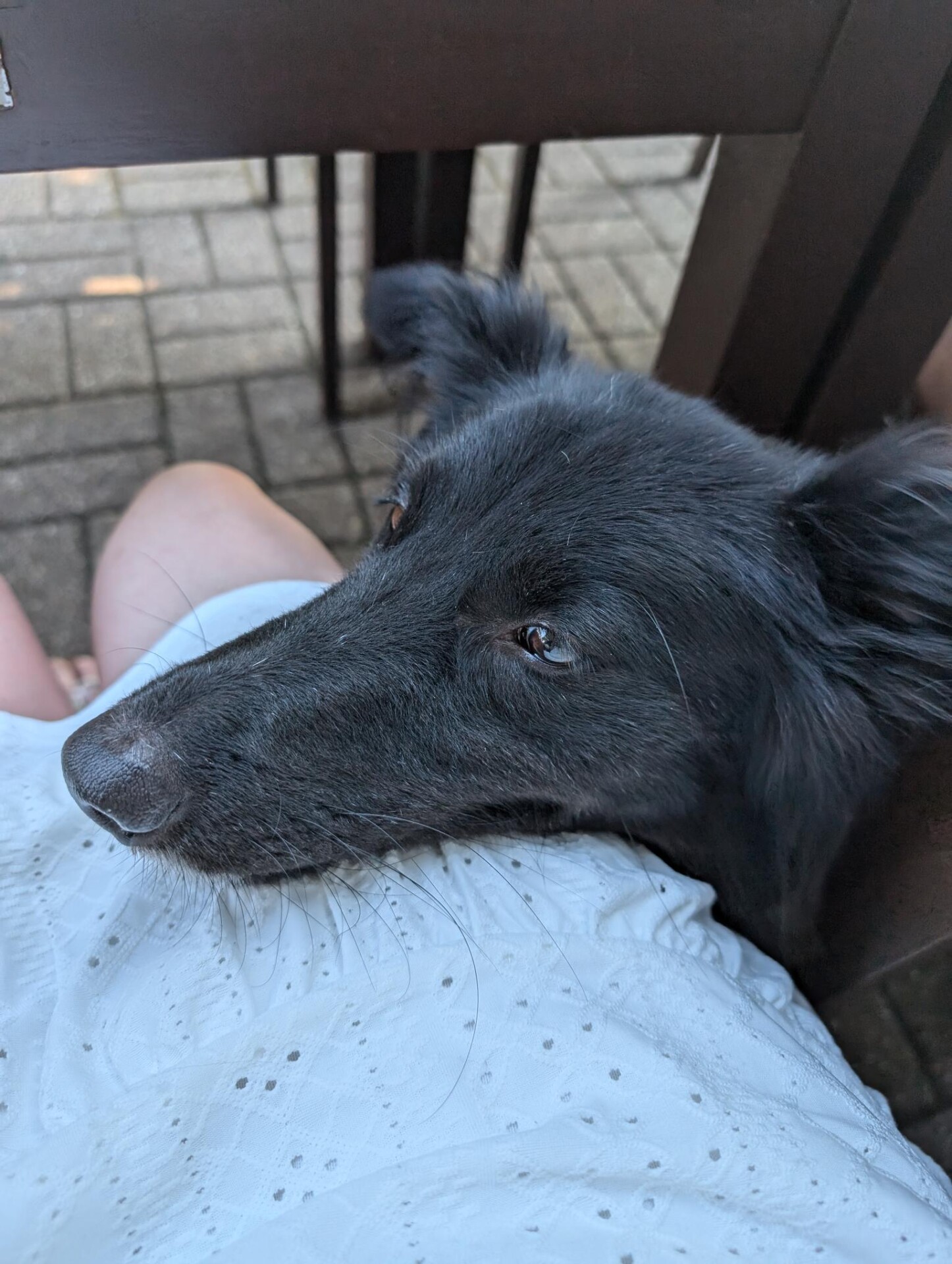 Ze bewaakt heel trouw het eten als de baasjes onverwacht even op moeten staan van tafel, ze geniet van een fijne mand om in te slapen.