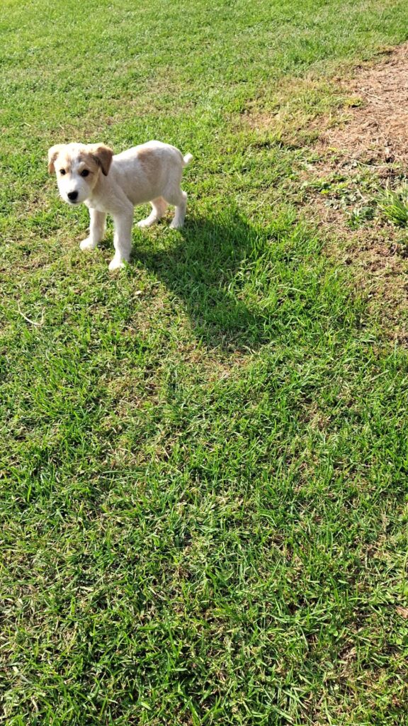 Ze werd alleen gevonden langs de hoofdweg in Bosnië, vol vlooien en luizen, met krullend haar dat inmiddels is geschoren en verzorgd. Ze is inmiddels schoon en gezond, en heeft haar eerste vaccinatie gehad op 6 oktober. Over ongeveer een maand is ze klaar om naar haar nieuwe thuis te vertrekken.