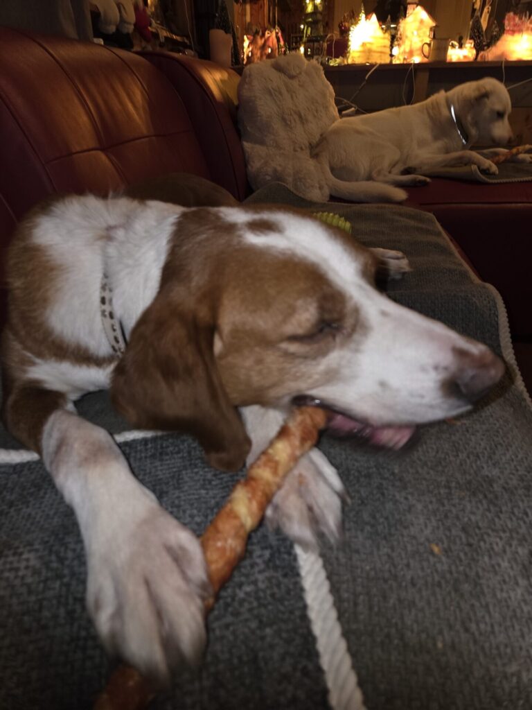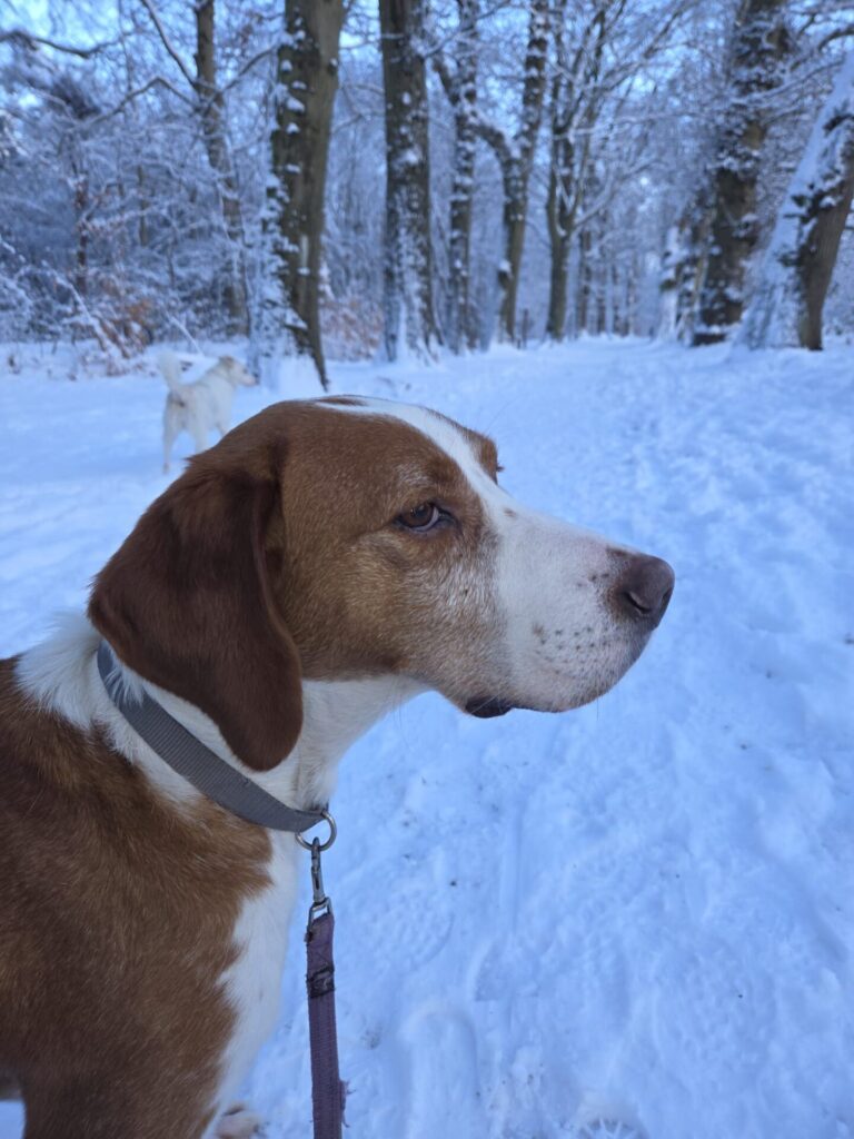 Larco is een prachtige, vriendelijke reu met een indrukwekkend levensverhaal. Zijn exacte leeftijd is niet bekend, maar hij wordt inmiddels geschat op 7 jaar of ouder. Wat meteen opvalt, is hoeveel liefde, trouw en levenslust hij nog in zich heeft.