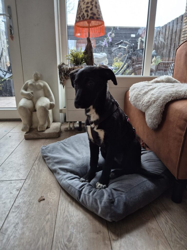 Leta is gevaccineerd en goed met iedereen: andere honden, katten, kinderen en volwassenen. Ze is lief, open en nieuwsgierig en kruipt het liefst dicht tegen je aan. Knuffelen staat hoog op haar lijstje, net als ontdekken, spelen en veilig slapen in de buurt van mensen. In eerste instantie moet ze wel even de kat uit de boom kijken, maar als ze eenmaal je herken, zit ze het liefst tegen je aan.