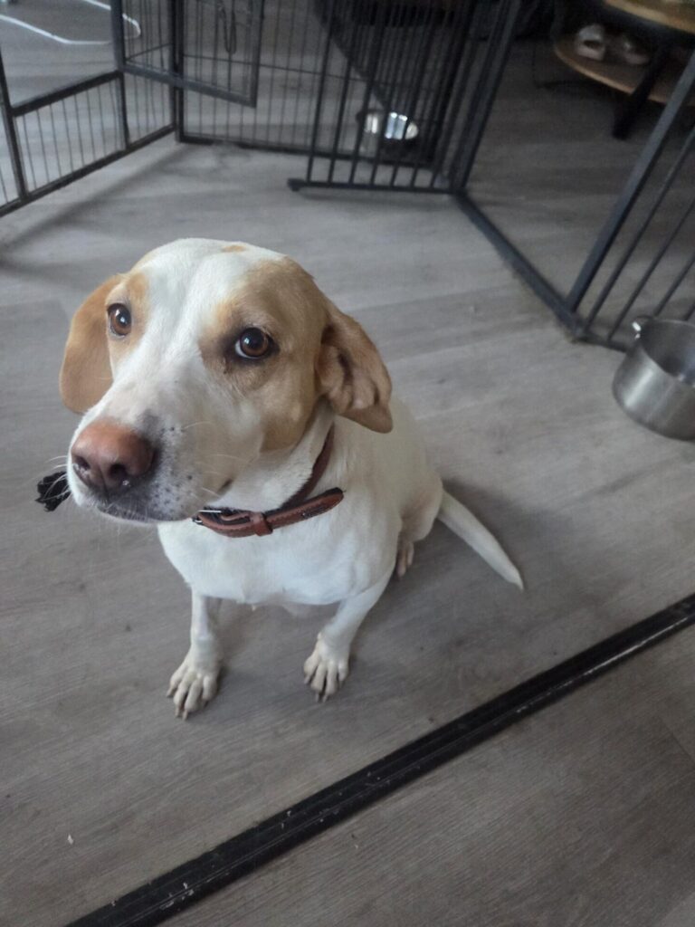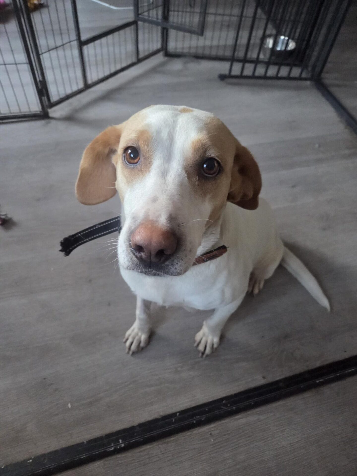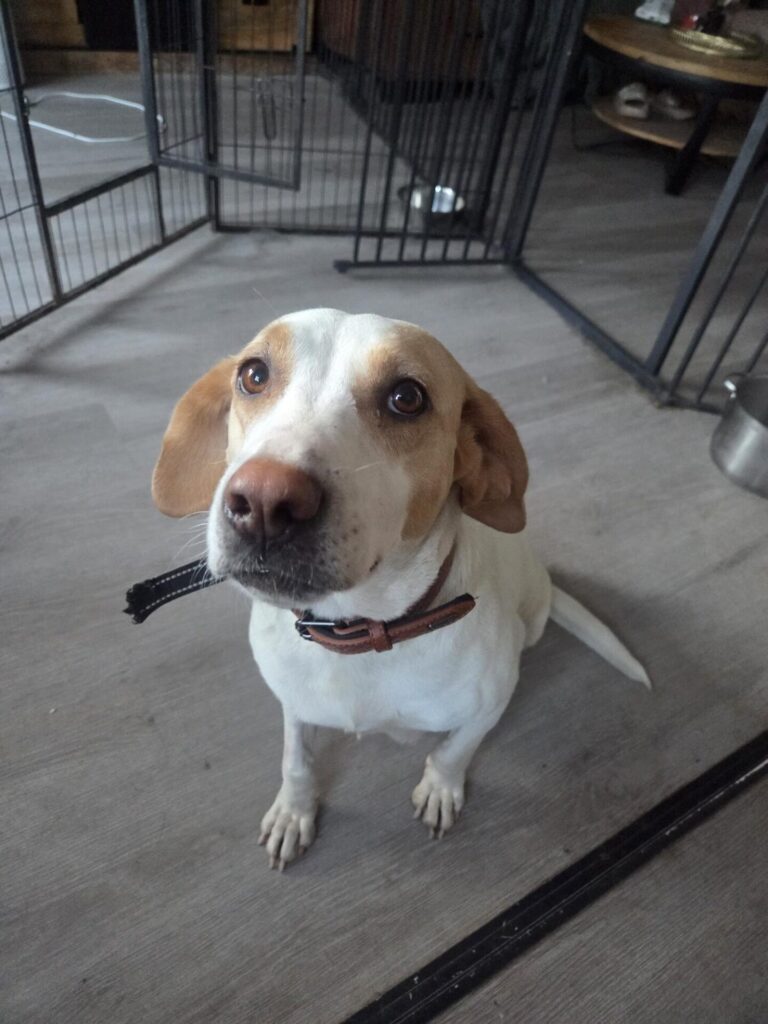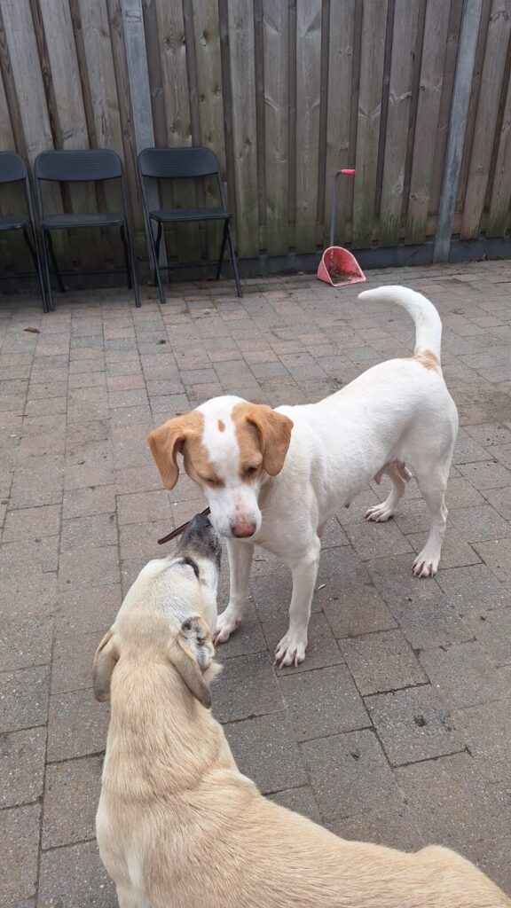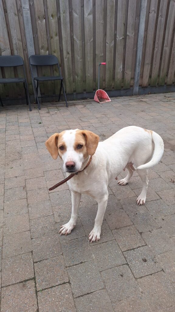 Deze prachtige Posavski dame (geb. september 2023) heeft al veel meegemaakt, maar verdient nu eindelijk rust en liefde. Ze werd zwanger gered uit Kroatië en moest in Nederland met spoed een keizersnede ondergaan. Helaas stootte ze haar pupjes af – en nu is het tijd dat ze zelf de kans krijgt op een gouden mandje.