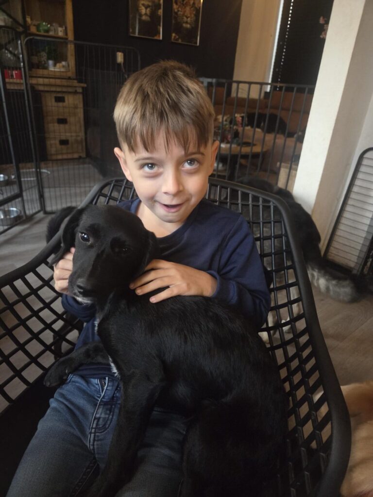 Ze is een lief, relaxed en open hondje, net als haar broer en zus – nergens bang voor, dol op aandacht, en geweldig met mensen, kinderen, honden én katten. Ze is het soort pup waar je meteen je hart aan verliest.