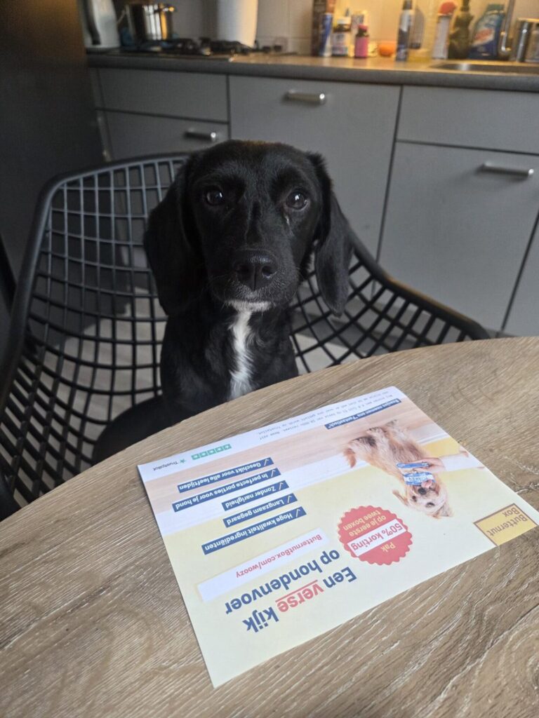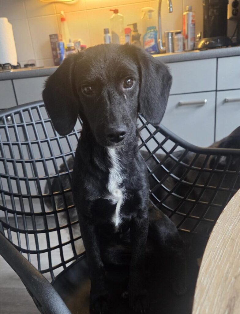 Lunet is geboren in april 2025, weegt ongeveer 7 kilo en is zo’n 40 cm hoog.
