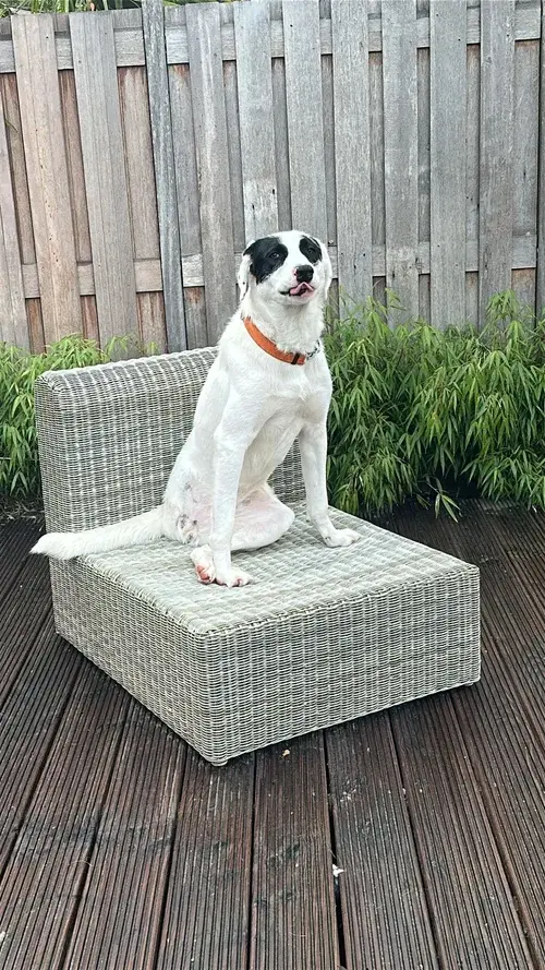 Gelukkig kon ze verhuizen naar een liefdevol fostergezin met omheinde tuin, bij Maaike en haar dochter. Daar viel alles op zijn plek. Ze mocht voor het eerst vrij rennen, spelen en snuffelen met andere honden – en sindsdien straalt ze van geluk.
