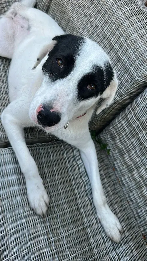 Eind 2023 werd MARIA in Griekenland gevonden in verschrikkelijke toestand. Ze was broodmager en zwaar mishandeld. Door haar verwondingen moest één van haar pootjes worden geamputeerd. De dierenarts schatte haar toen nog geen jaar oud.