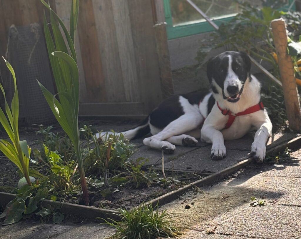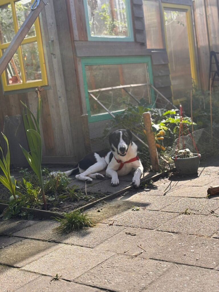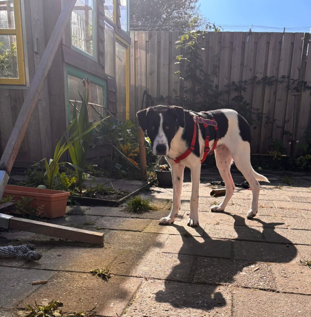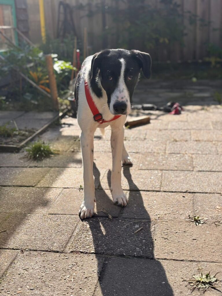 Te merken is dat hij enorm veel steun zoekt bij de andere honden. Er moet bij het nieuwe baasje dan ook al minimaal één hond in het huishouden wonen.