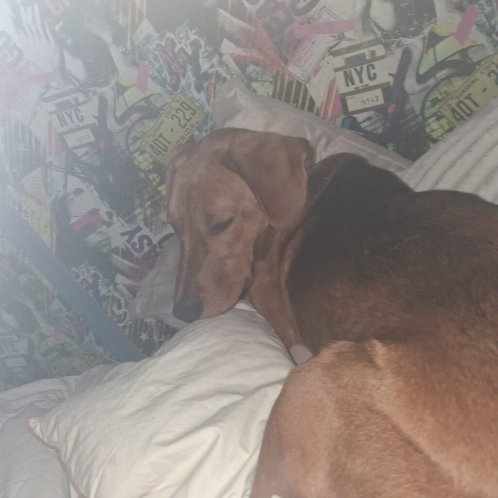 Katten zijn nog niet getest, maar Memo is van het type Posavski Hound — een ras dat doorgaans vriendelijk en sociaal is, ook tegenover katten.