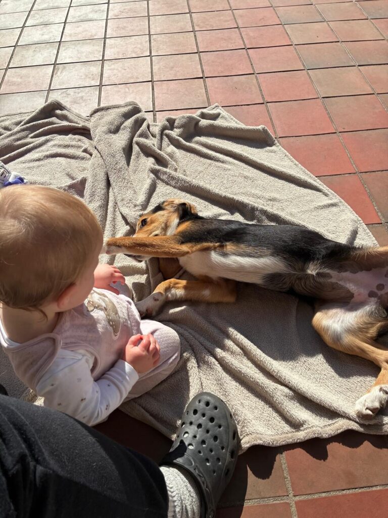 Merida is een energiek pupje met een gemiddelde tot hoge energie: ze gaat graag op ontdekking in de tuin, speelt graag met haar leeftijdsgenoten en kinderen (0-10 jaar), en laat daarbij al goed haar “stem” horen. Ze is een echte kus- en knuffelkont, vriendelijk en sociaal naar andere dieren, kinderen en volwassenen.