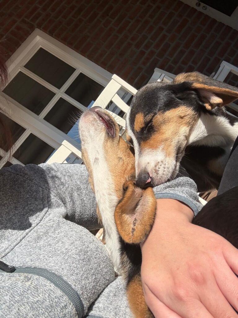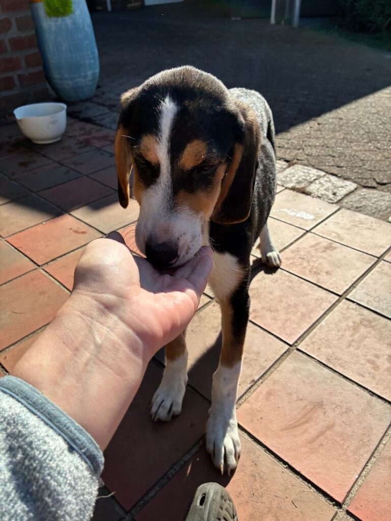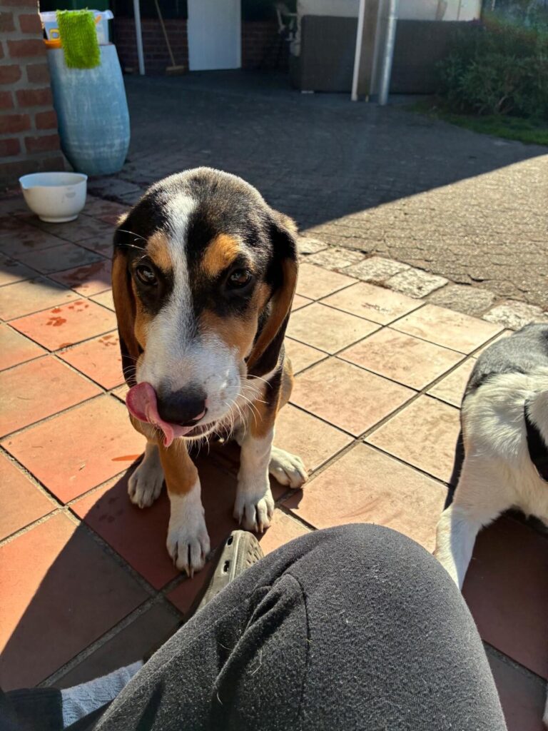 Moana is soms voorzichtig en kijkt eerst even de kat uit de boom. Ze laat van zich horen met een klein blafje als er iemand binnenkomt, maar zodra haar opvangmama het aangeeft, luistert ze direct. Ze is een echte knuffelkont, speelt graag met haar zusje Merrida, geeft kusjes en komt graag bij je liggen. Ze geniet van spelletjes in de tuin met andere honden en weet haar plekje te vinden als ze moe is. Haar energie is gemiddeld tot hoog en ze is al braaf zindelijk.
