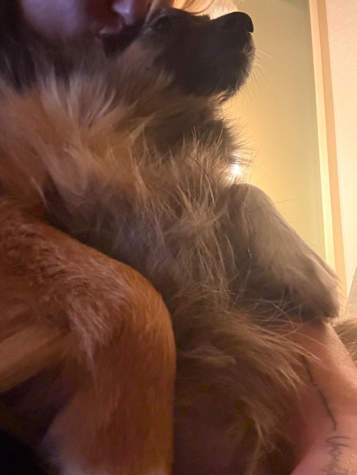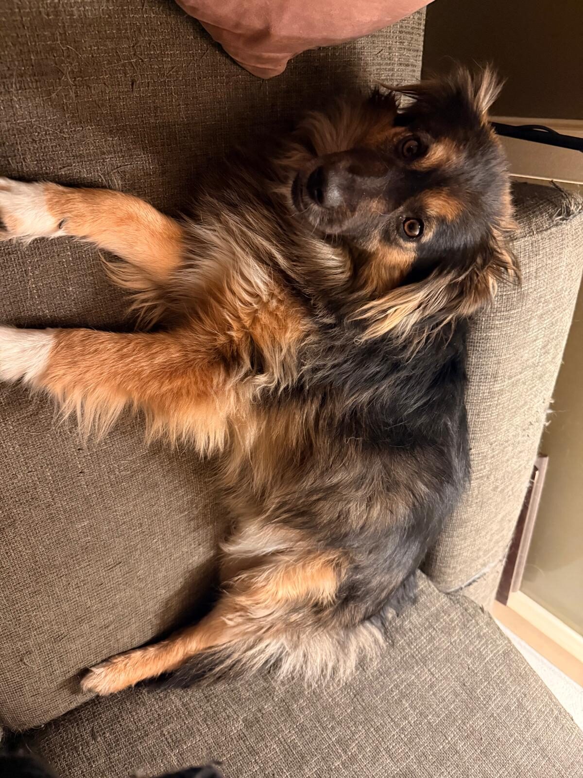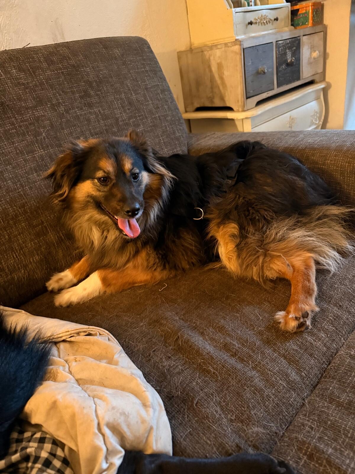 Na een paar weken zie je al een groot verschil. De spanning ebt weg en er verschijnt een heel ander hondje. Molly loopt je achterna, reageert enthousiast op “Molly, kom”, springt zelf op de bank en zoekt actief contact. Ze komt tegen je aan liggen, legt een poot op je arm of rug en geniet zichtbaar van kriebels en belly rubs 🤍