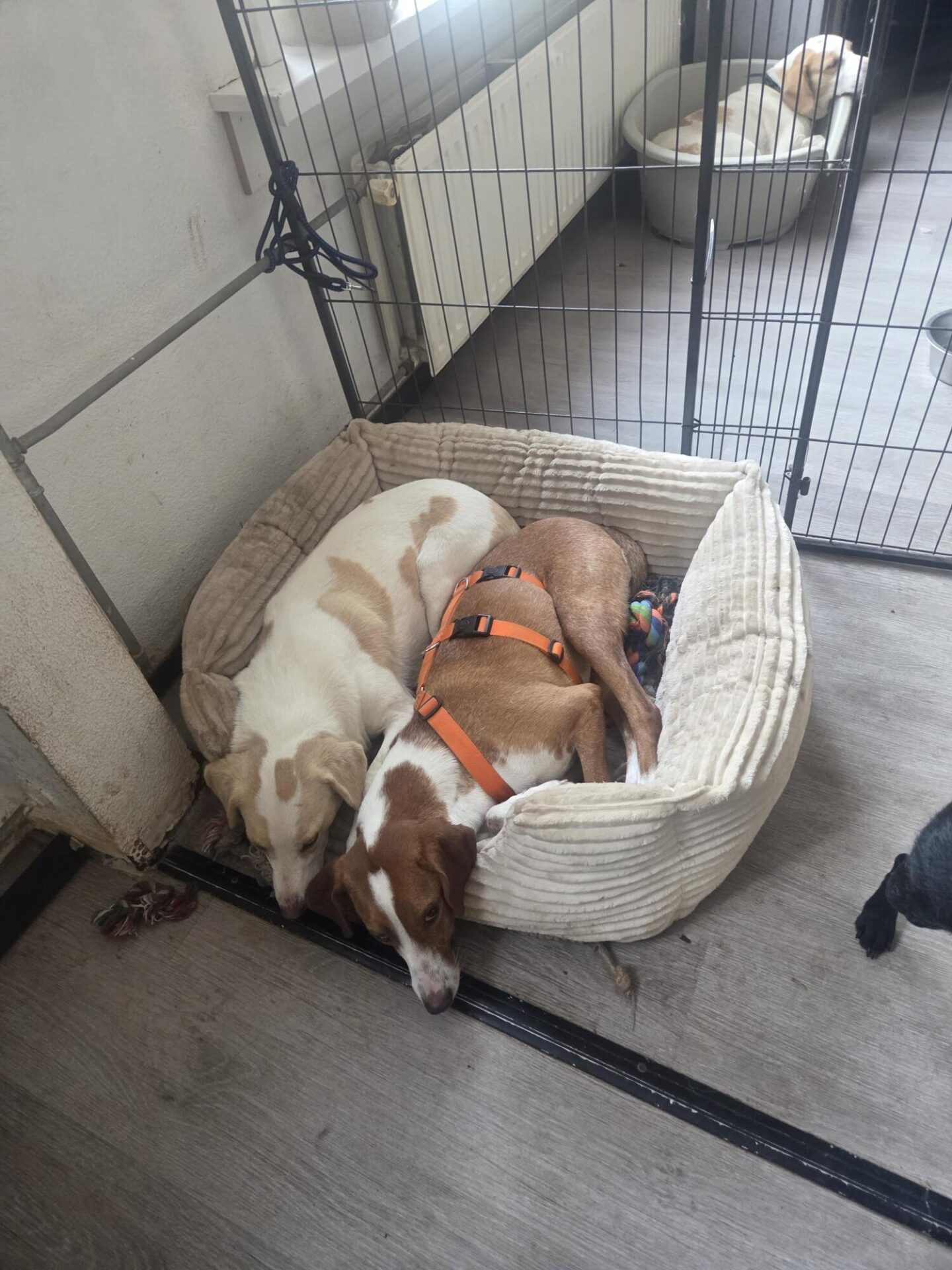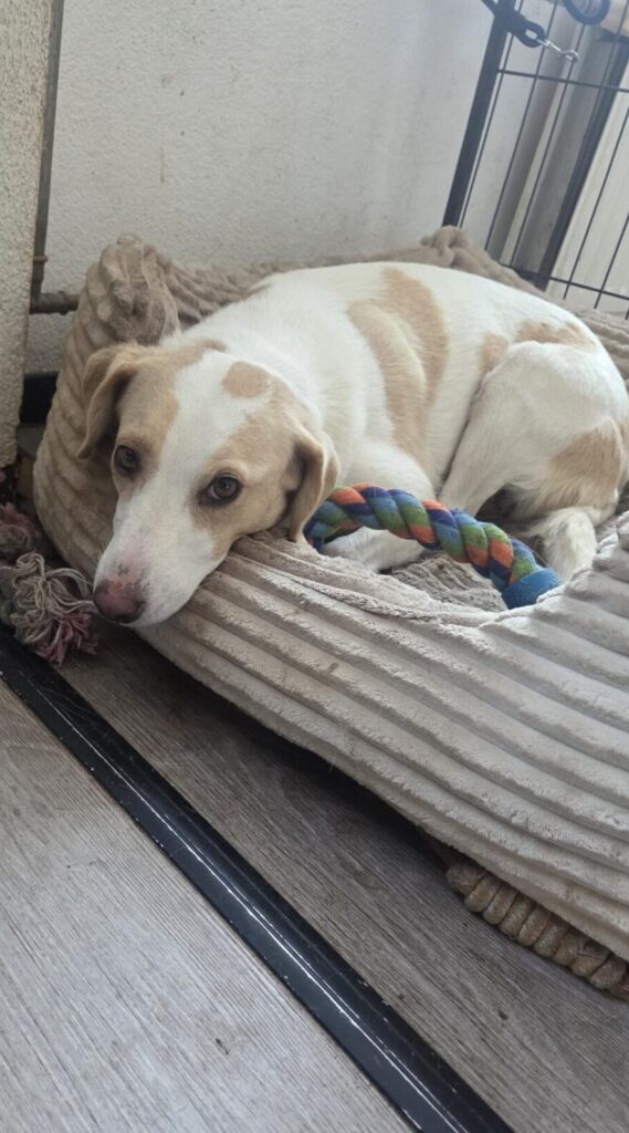 Lieve Monika werd in april 2024 geboren en heeft al een zwaar verleden achter de rug. Ze groeide op in een ander shelter waar honden geen namen kregen, maar slechts een nummer waren. Geen knuffels, geen persoonlijke aandacht, geen liefde – alleen wachten achter tralies.