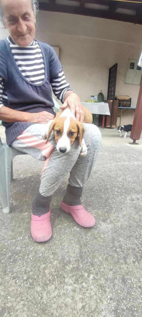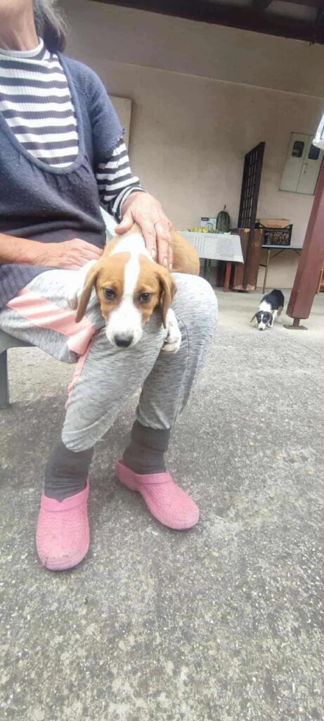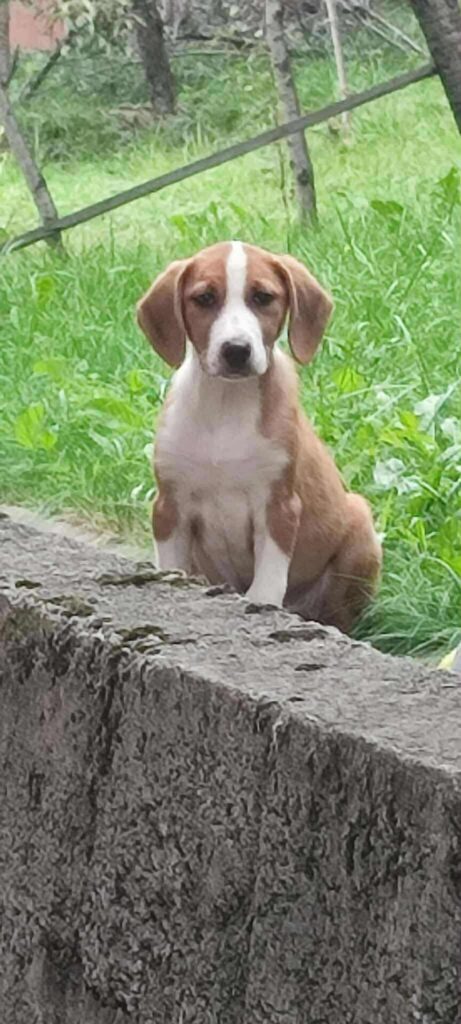 Orange is een lief meisje uit een nestje van 2 pups, geboren in juli 2025. Ze weegt ongeveer 6 kilo en is rond 30 cm hoog.