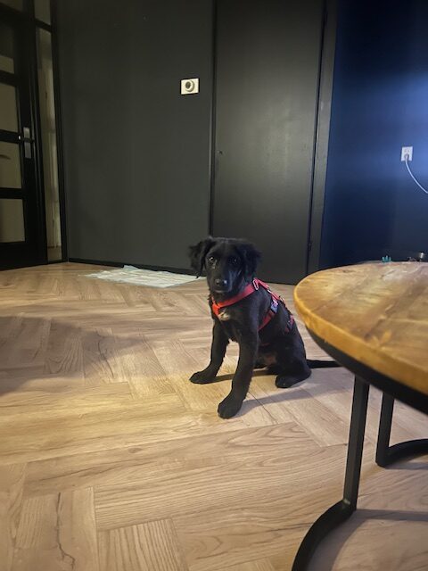 Hij begint steeds meer te genieten van aaien en aandacht en zoekt zijn mensen ook vaker uit zichzelf op. Soms speelt hij al vrolijk, bijvoorbeeld wanneer hij achter een balletje aan kan gaan.