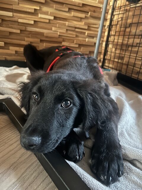 Wanneer zijn opvanggezin even weg is, blijft hij rustig alleen. Hij ligt ontspannen in zijn mand en blaft of piept niet.