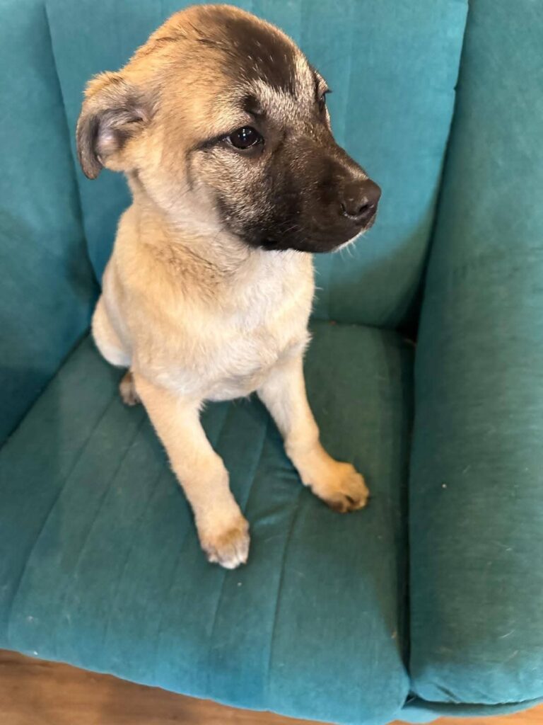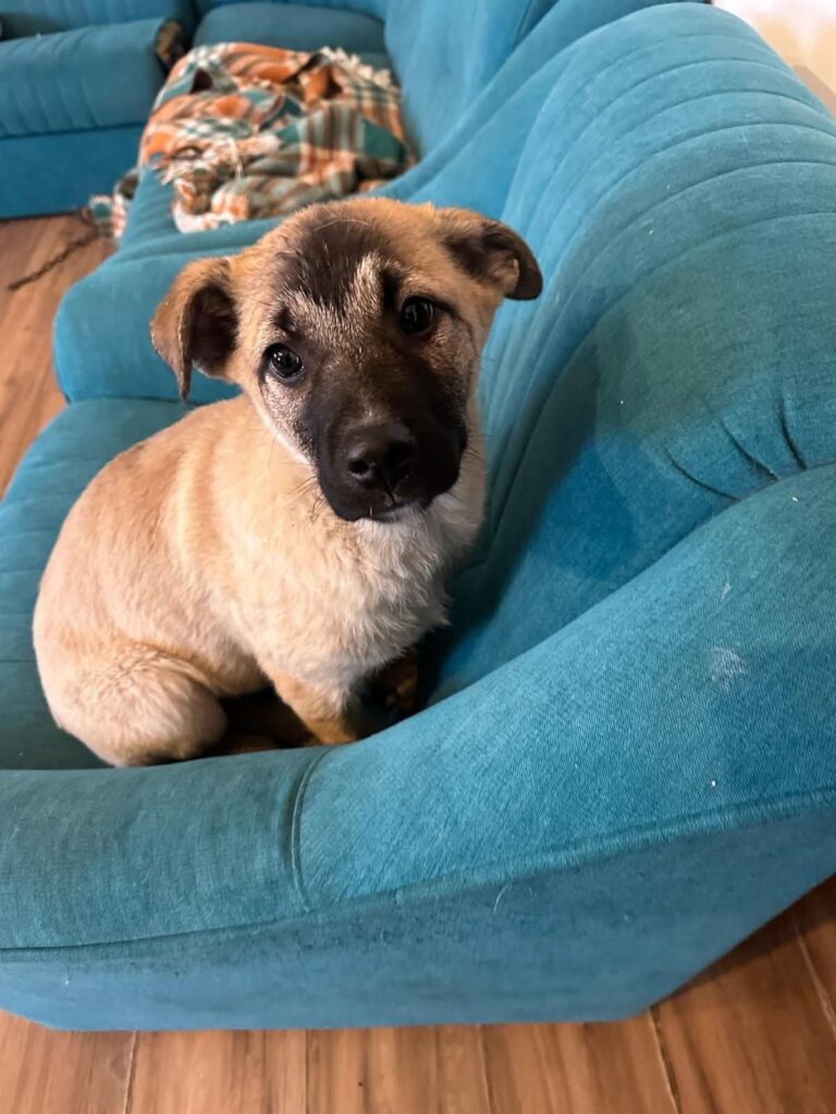 Santos is een goedzak pur sang. Misschien niet de slimste van het nest, wel de zachtste. Juist daardoor werd hij door zijn broertjes en zusjes aangevallen, zelfs tot bloedens toe 😔. Dit lieve ventje heeft al meer meegemaakt dan een pup ooit zou moeten.