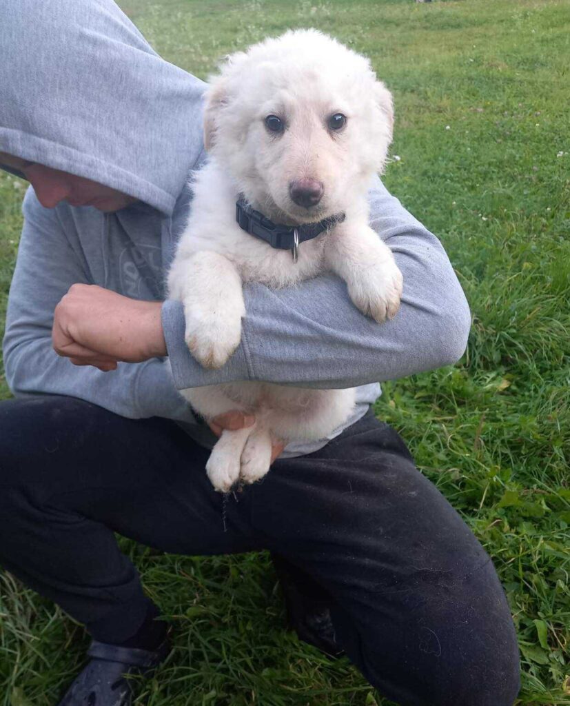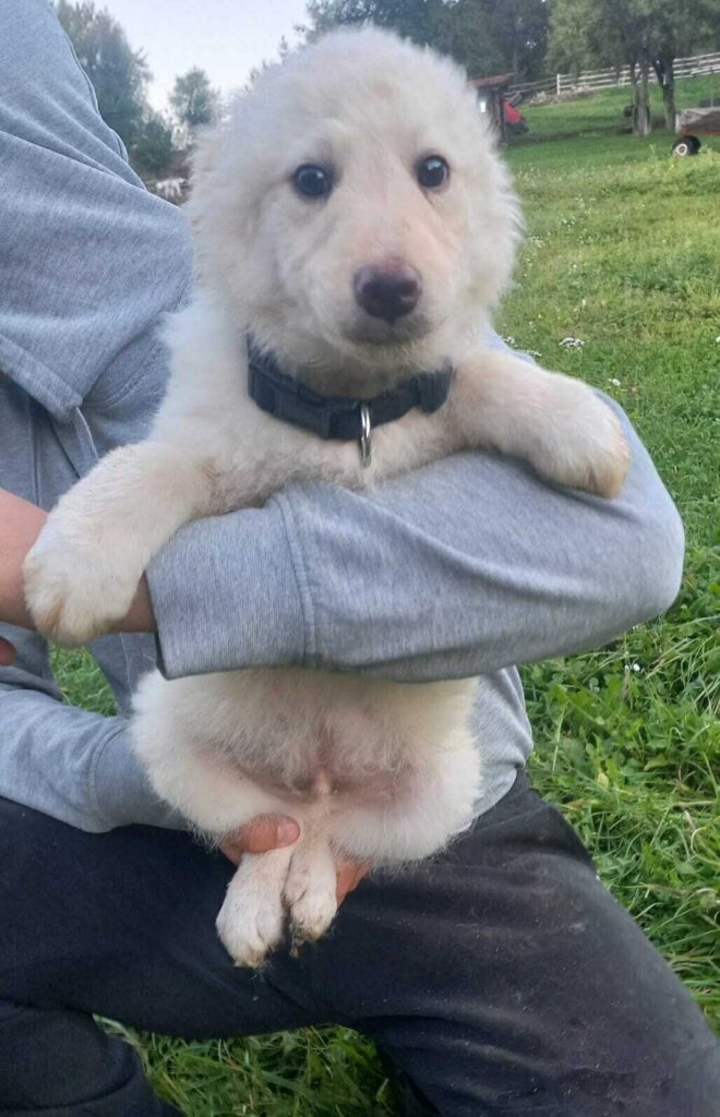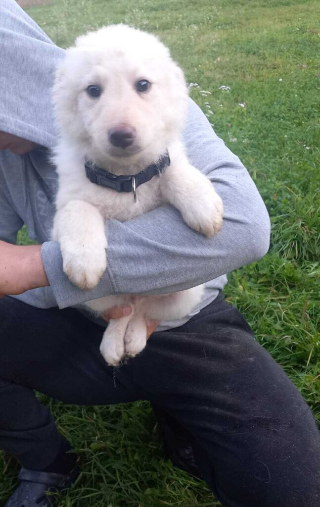 Snowball (ook wel Snowy) is een lieve jongen uit een nest van 4 pups, geboren in juli 2025. Hij weegt ongeveer 6 kilo en is rond 30 cm hoog.