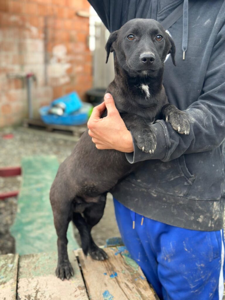 Stefan is een jonge reu van ongeveer 8 maanden oud (geboren op 25 maart 2025). Hij is een klein hondje van circa 35 cm hoog en weegt ongeveer 7 kilo. Zijn leven begon allesbehalve veilig: Stefan werd alleen en doodsbang gevonden op een drukke weg, nadat hij daar was achtergelaten. Hij werd op tijd gered en verblijft sinds de zomer in het shelter.