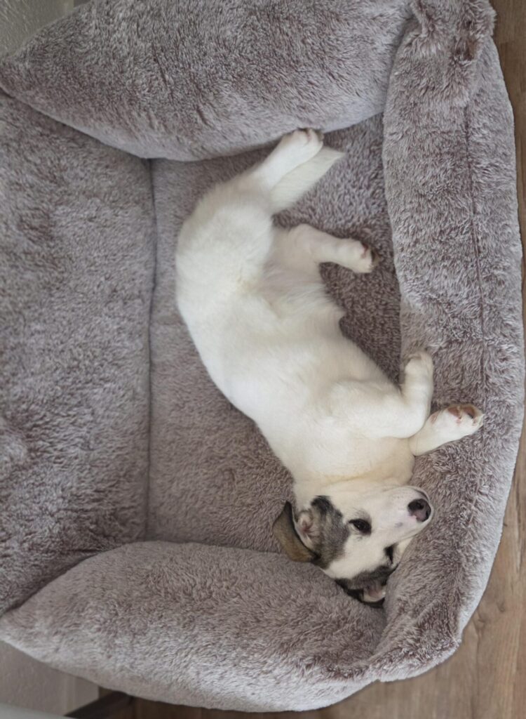 Ze is lief, gevoelig en geniet van rustige aandacht. Een knuffel, een zachte stem of gewoon even samen zijn — daar bloeit Stella van op. Af en toe mag ze in huis bij haar verzorger zijn, maar door de drukte in de opvang is dat helaas niet vaak mogelijk.