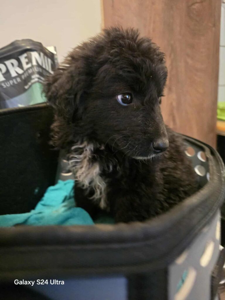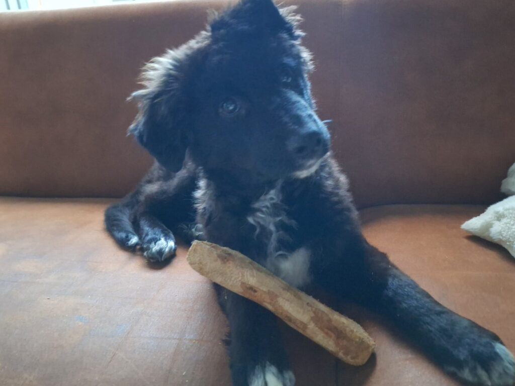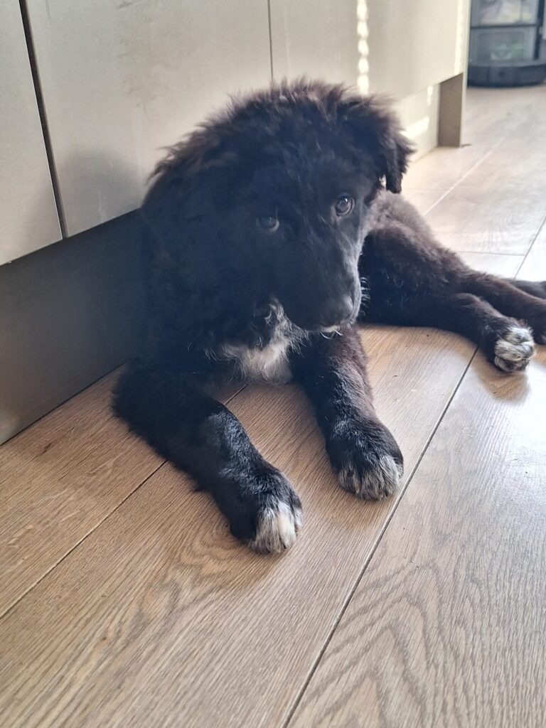 Met zijn 48 cm en 8,4 kilo is hij nog slank en jong. Hij zal uitgroeien tot een mooie middelmaat van ongeveer 15β20 kilo. Een formaat dat fijn mee wandelt, maar ook heerlijk bij je op de bank past.