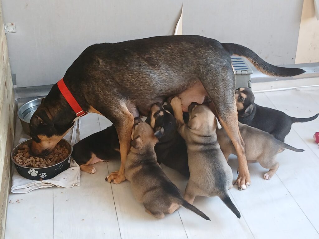 Op 13 februari is Ysa in Nederland bevallen van 8 pups. Ze is een toegewijde moeder en zorgt liefdevol voor haar kleintjes. Haar lichaam is nog volop bezig met voeden, wat verklaart dat haar tepels nu nog zichtbaar zijn. Zodra ze stopt met voeden, zal dit weer herstellen.